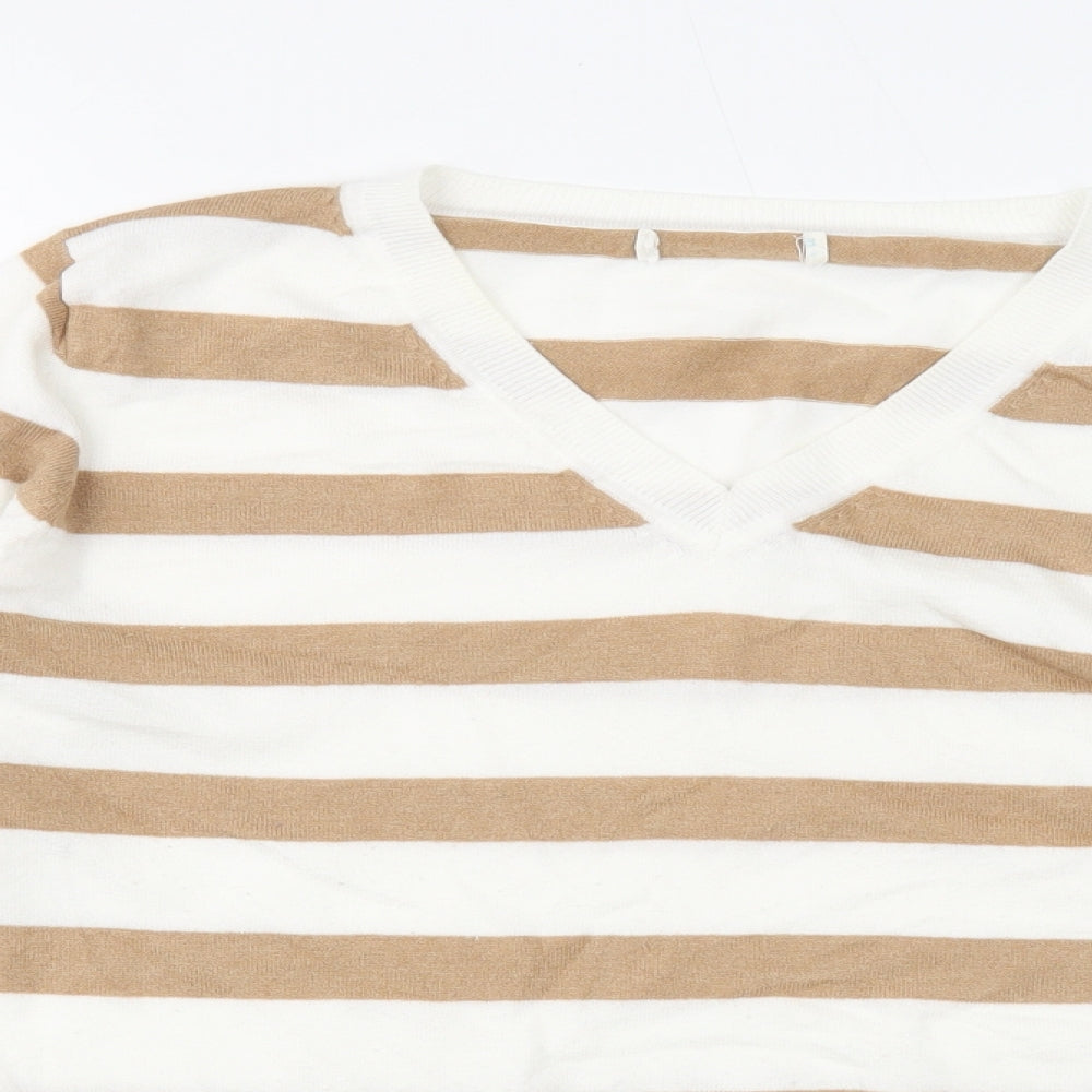 Primark Womens White V-Neck Striped Polyester Pullover Jumper Size 10