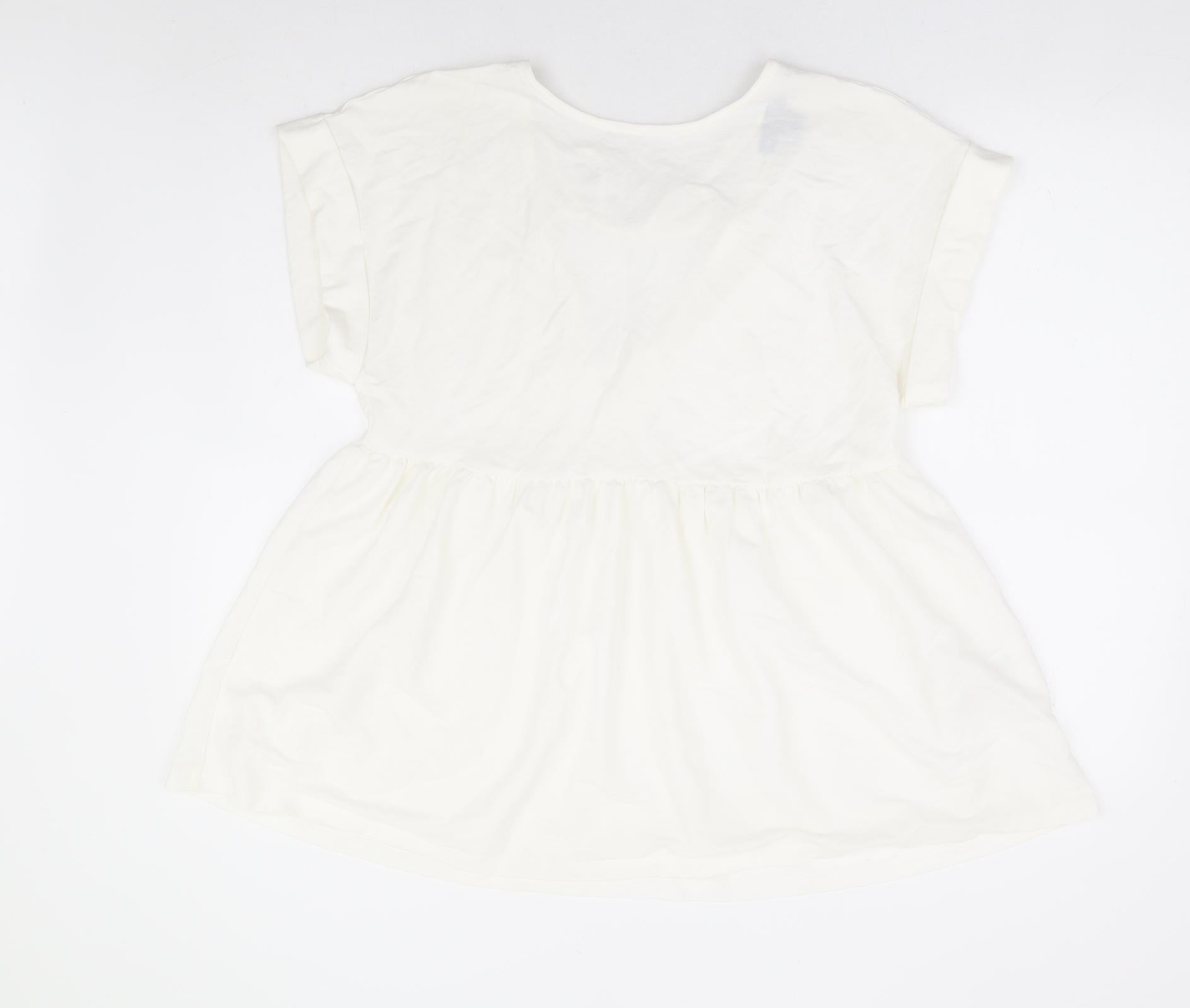 Primark Womens White Viscose Basic Blouse Size 10 Round Neck - Smock Peplum