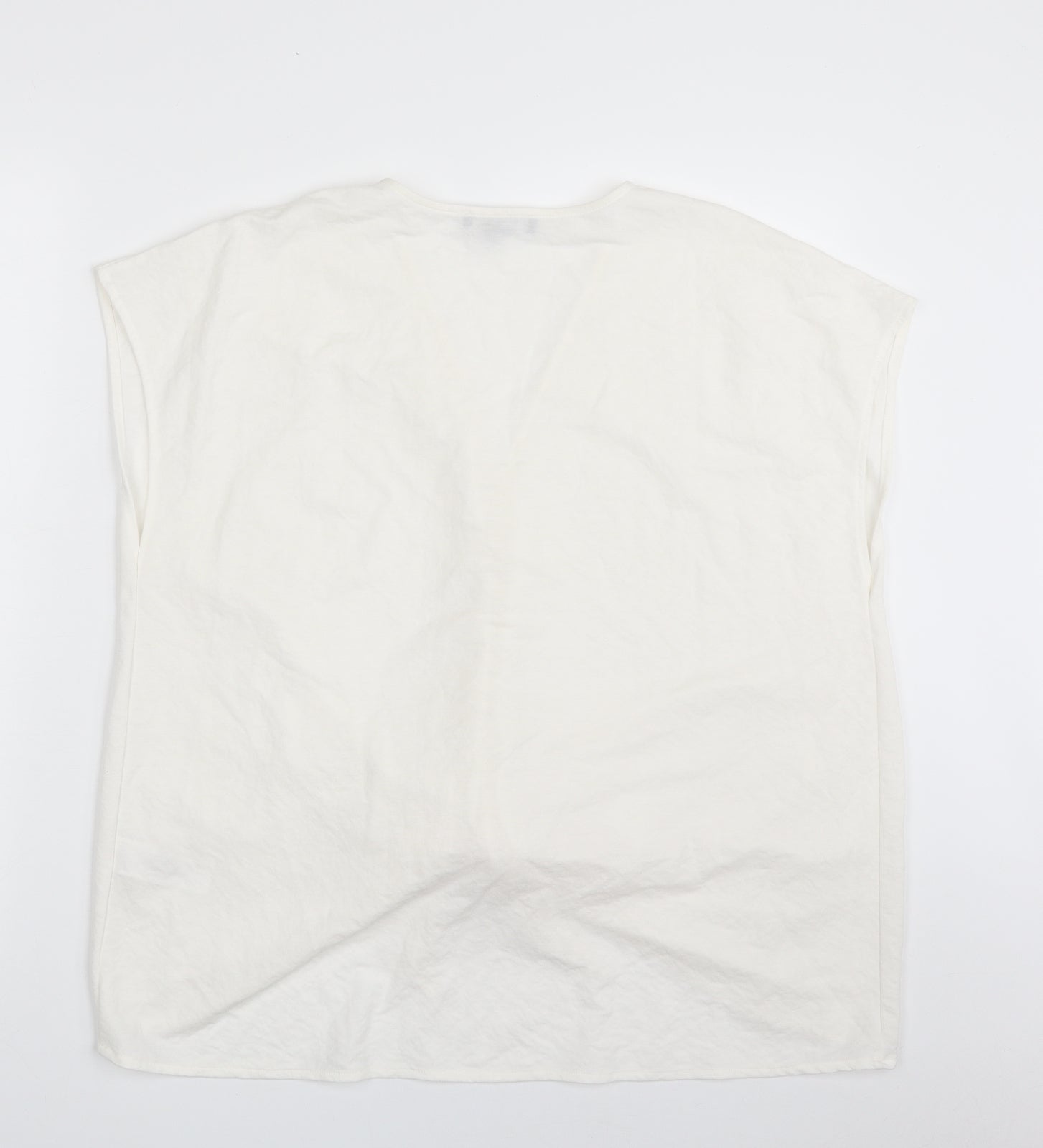 Primark Womens White Viscose Basic Blouse Size 10 V-Neck - Tie