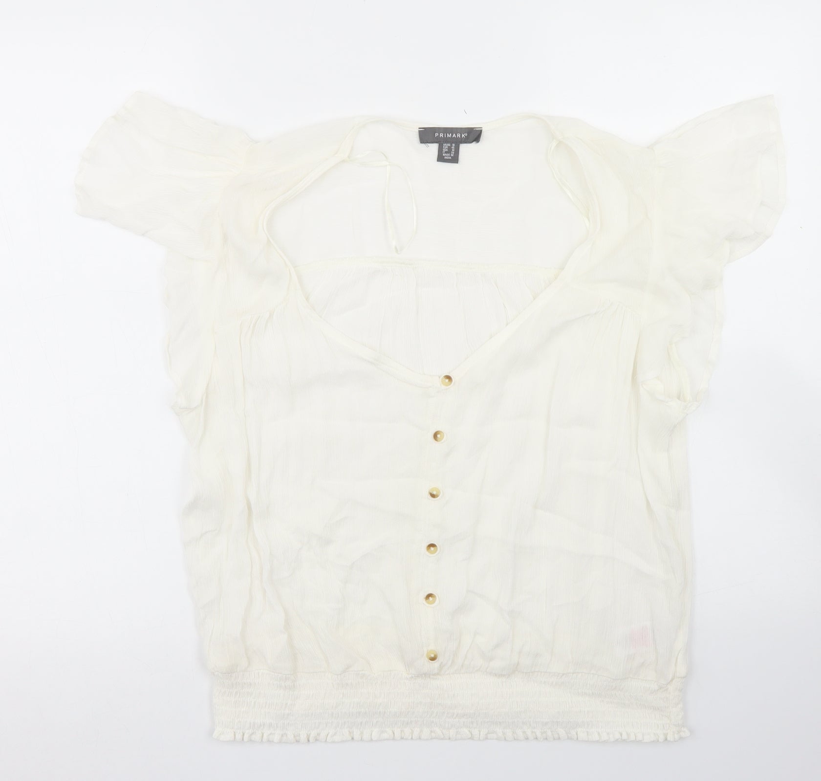 Primark Womens White Viscose Basic Blouse Size 18 Round Neck