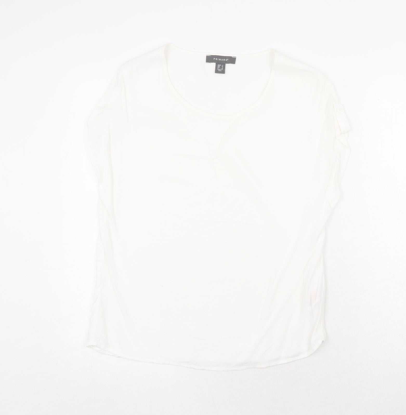 Primark Womens White Viscose Basic T-Shirt Size 6 Boat Neck