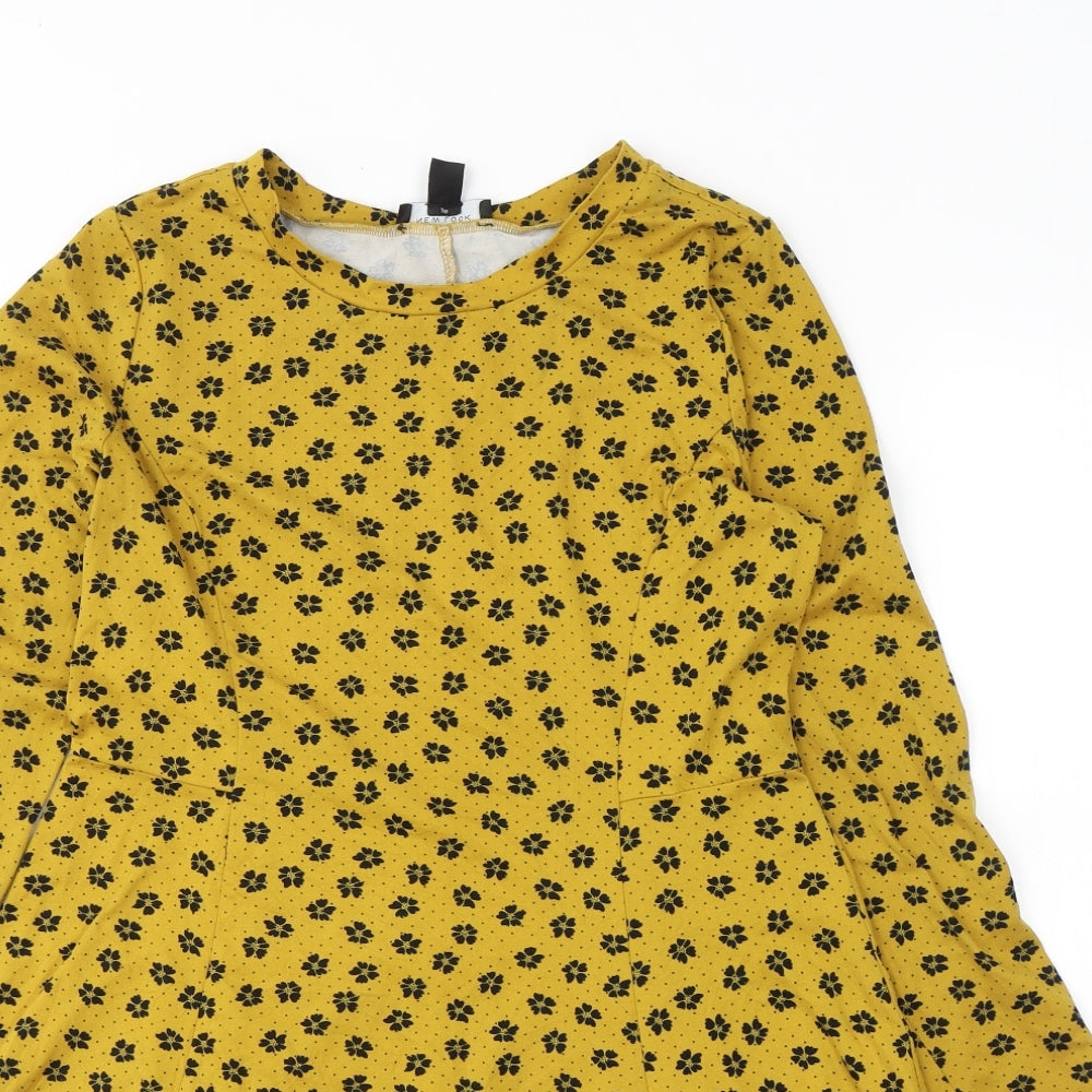 Primark Womens Yellow Floral Polyester Fit & Flare Size 10 Round Neck Pullover