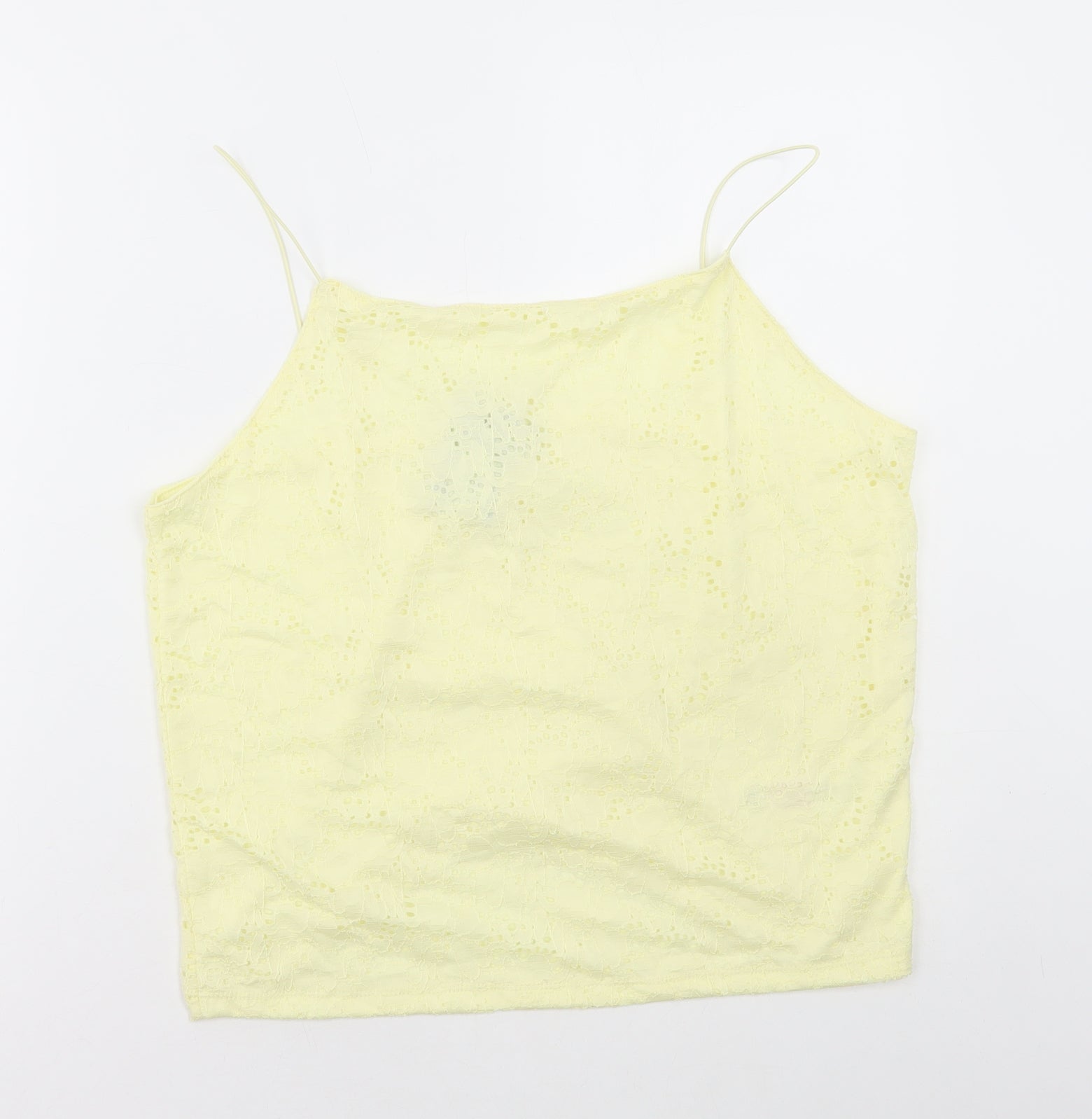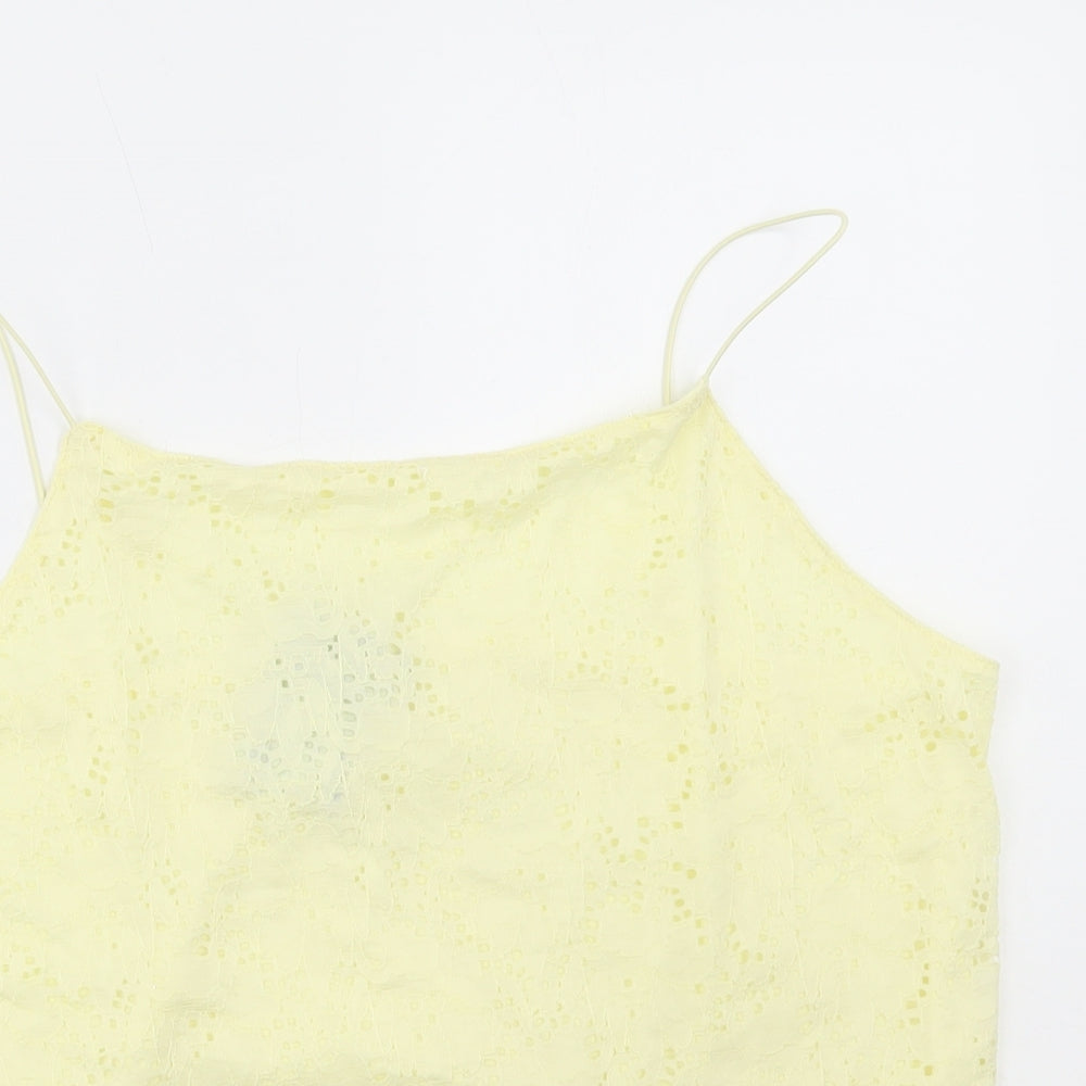 Primark Womens Yellow Polyamide Camisole T-Shirt Size XL Square Neck - Lace Detail