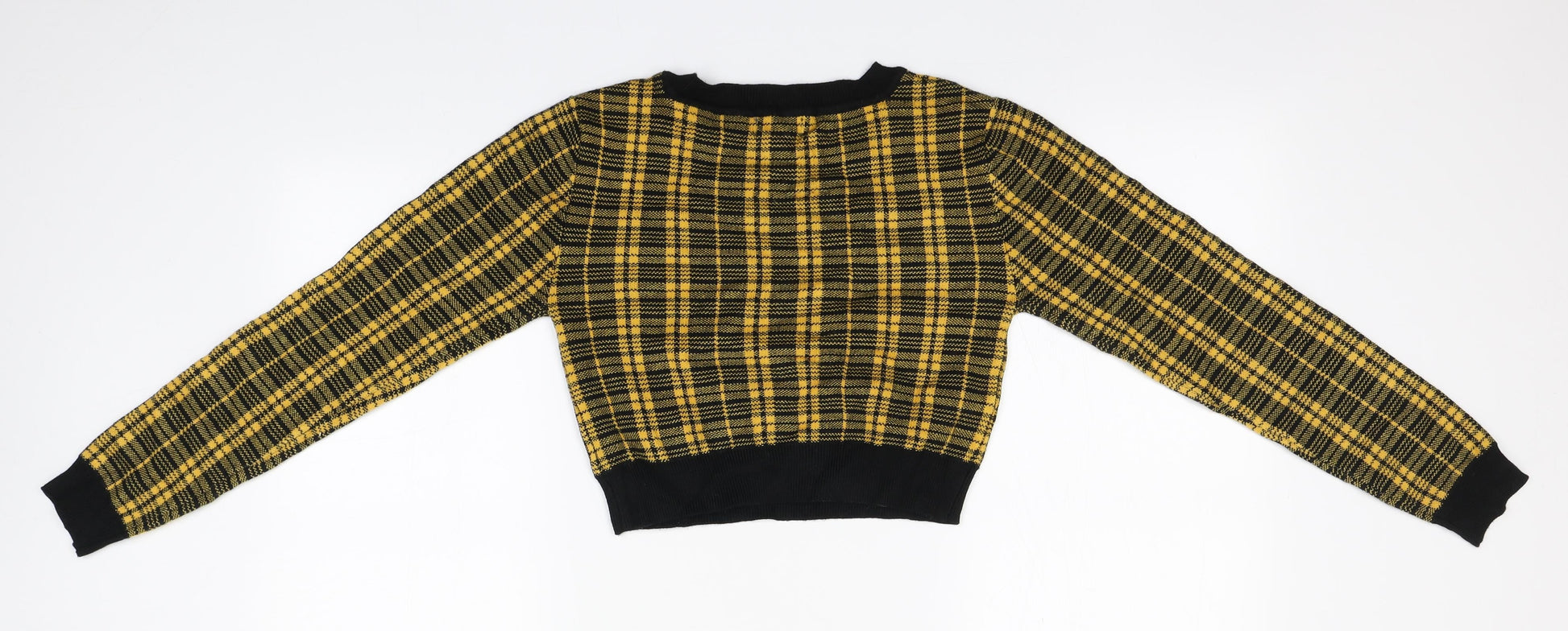 Primark Womens Yellow Roll Neck Plaid Viscose Pullover Jumper Size 4