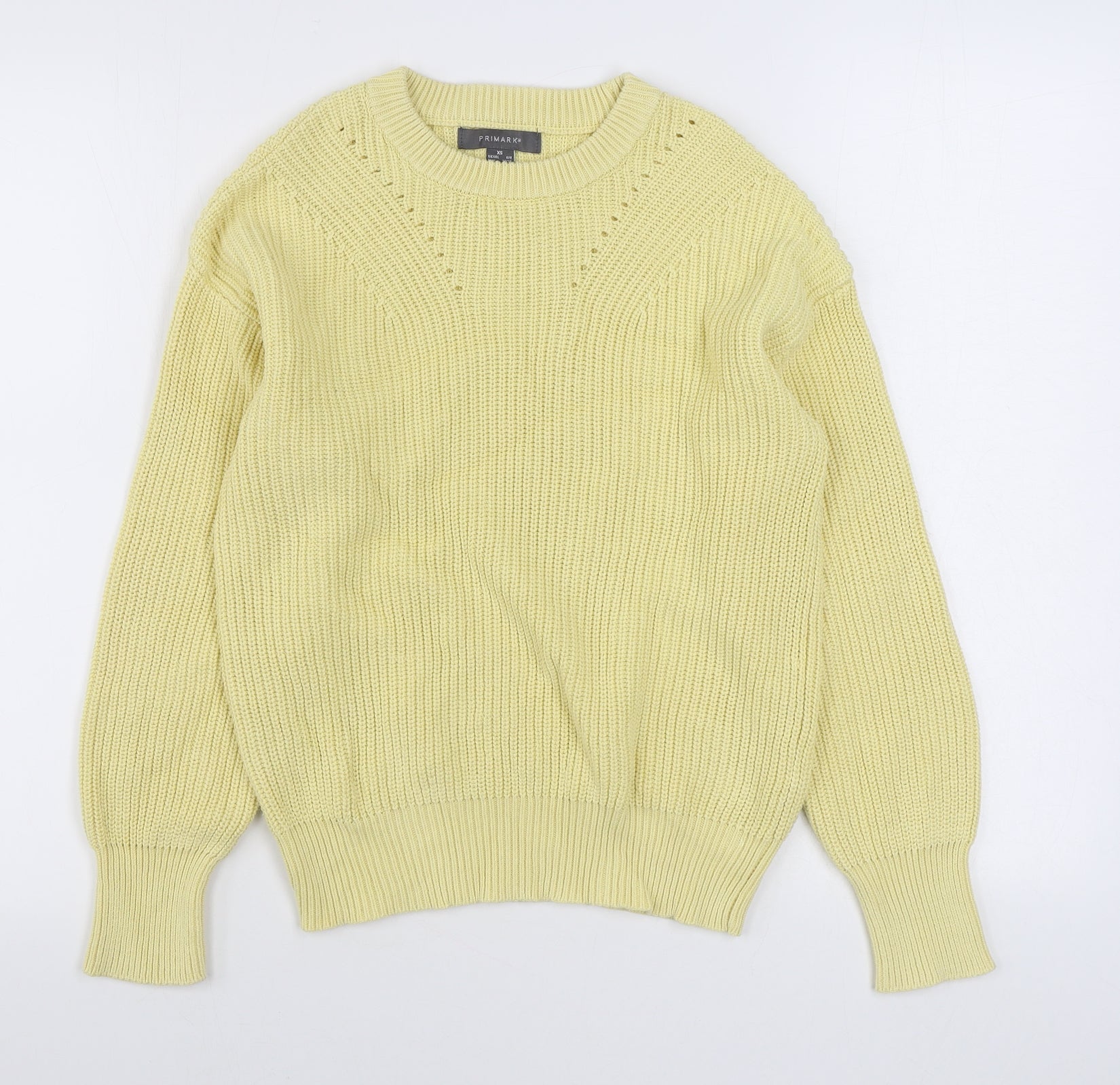Primark Womens Yellow Round Neck Cotton Pullover Jumper Size XS
