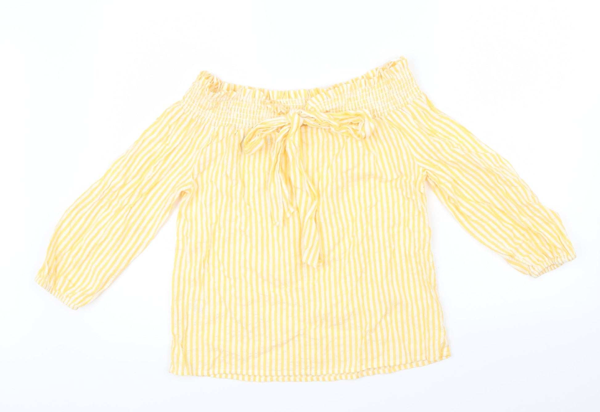 Primark Womens Yellow Striped Basic Blouse Size 8 - Bow detail