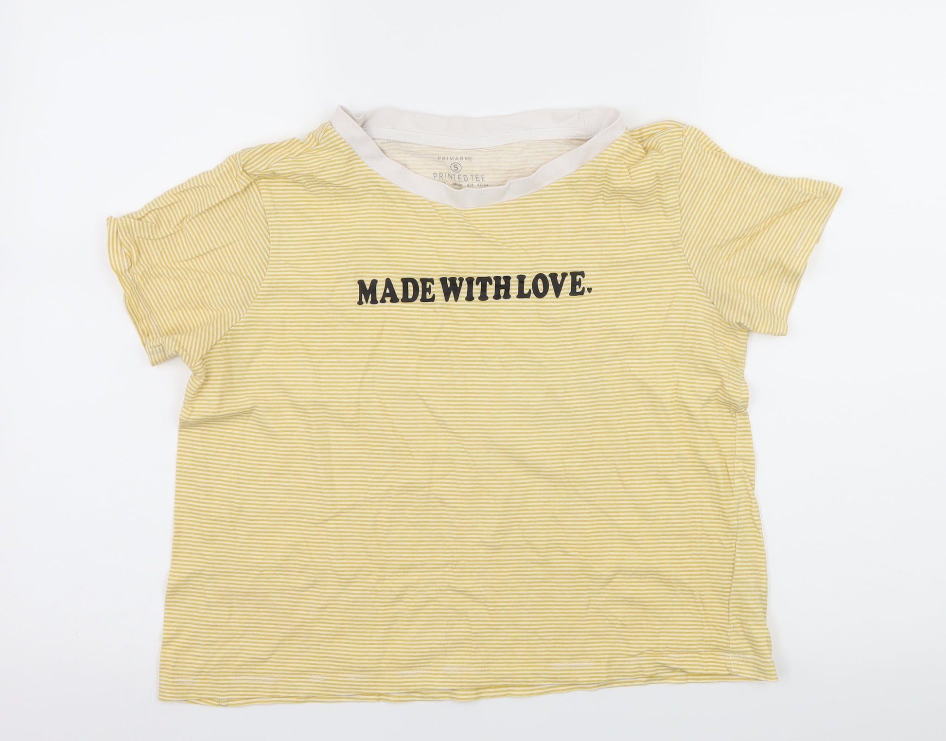 Primark Womens Yellow Striped Jersey Basic T-Shirt Size 10 - Made With Love