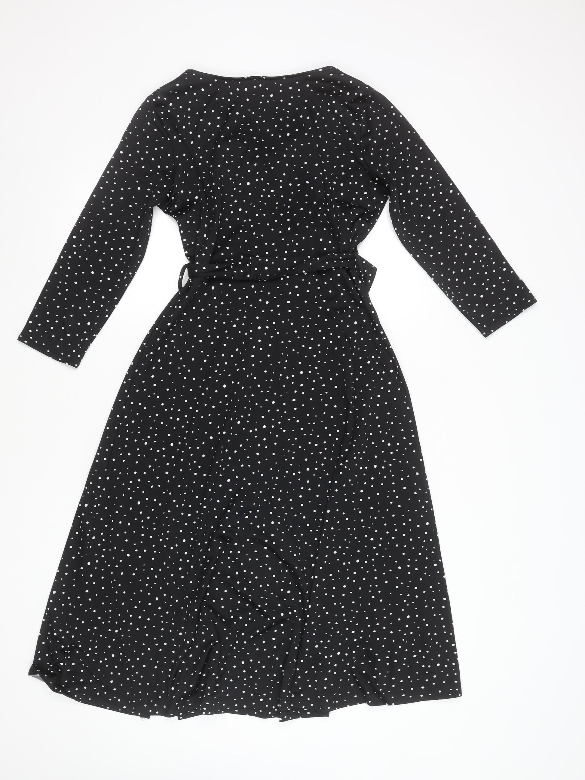 Principles Women Black Polka Dot Petite Size 8 Wrap Midi Dress