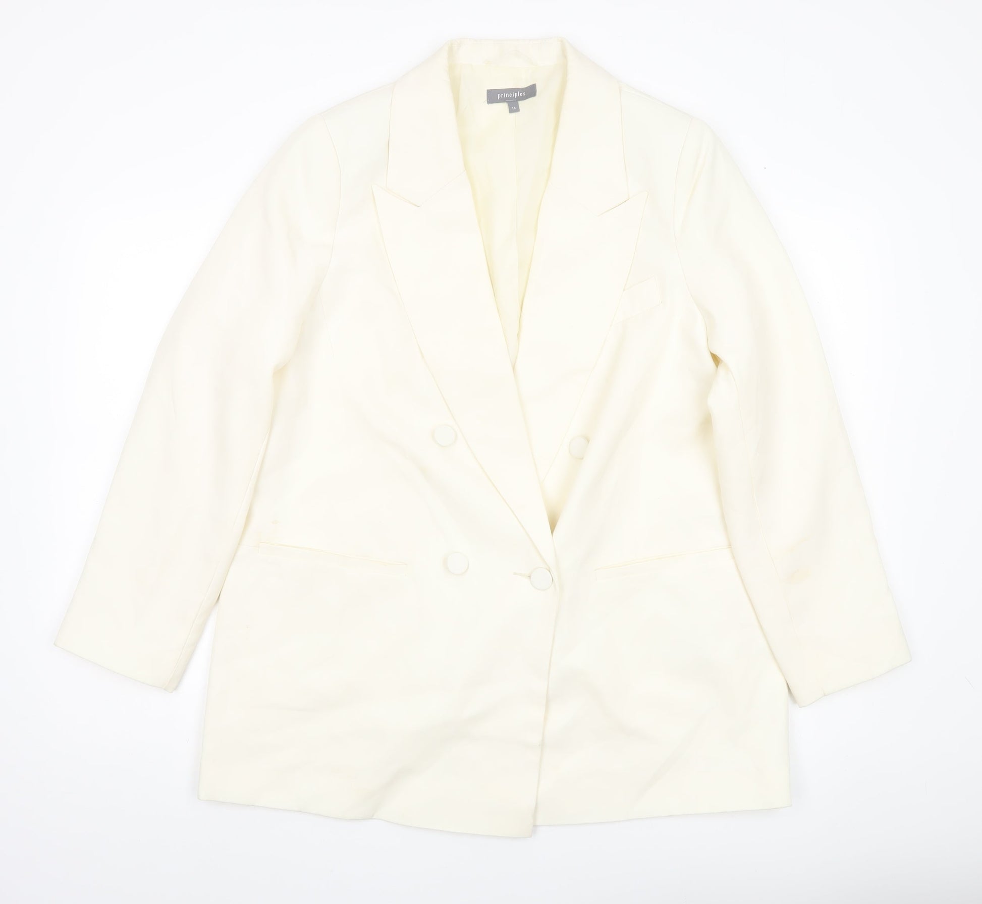 Principles Women Ivory Size 14 Double-Breasted Blazer Jacket