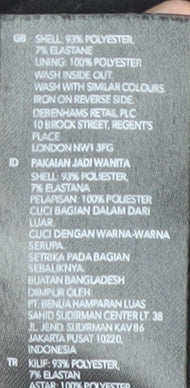 - Material Breakdown: 93% Polyester 7% Elastane