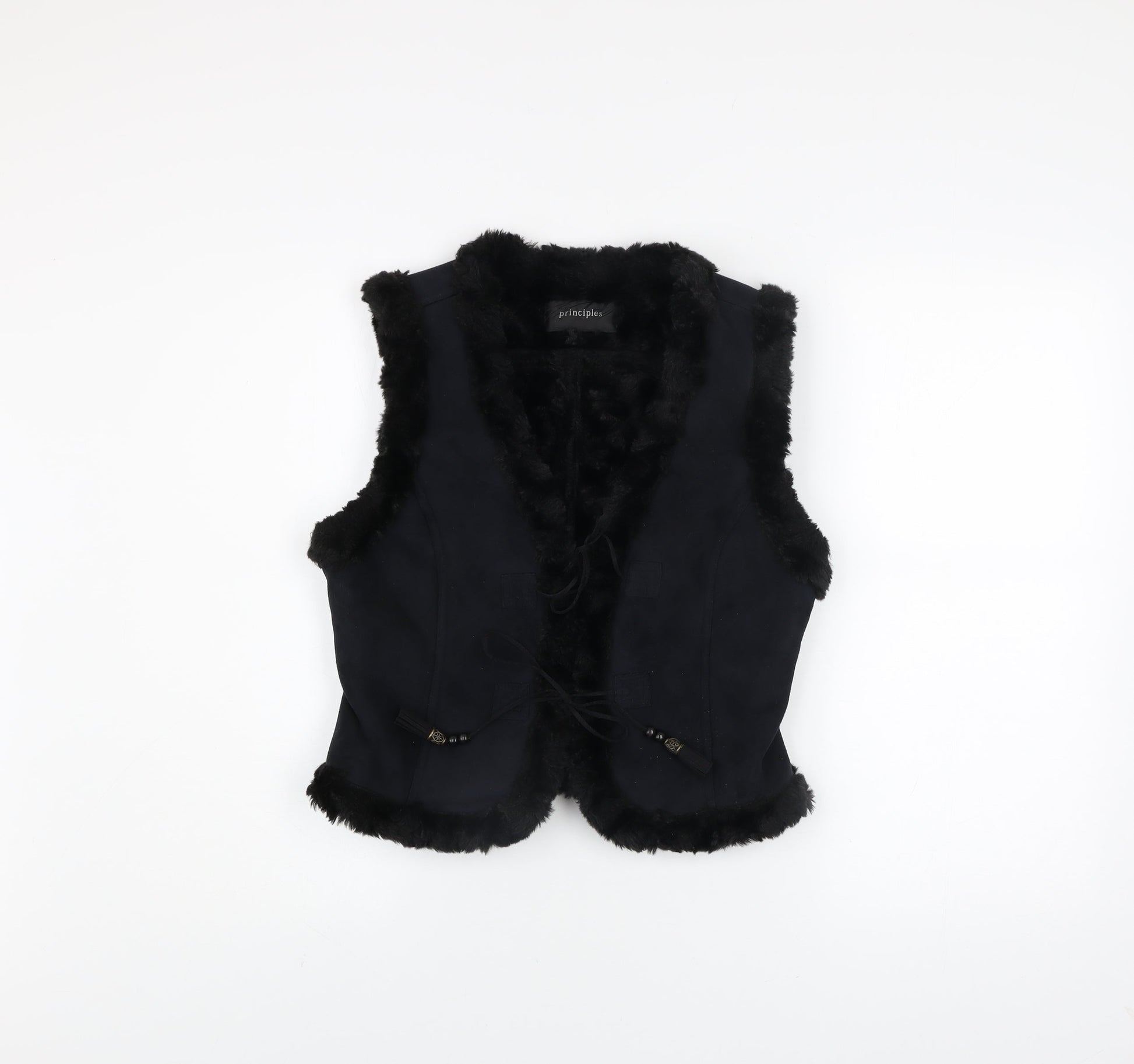 Principles Women's Black Faux Fur Trim Waistcoat Size 10