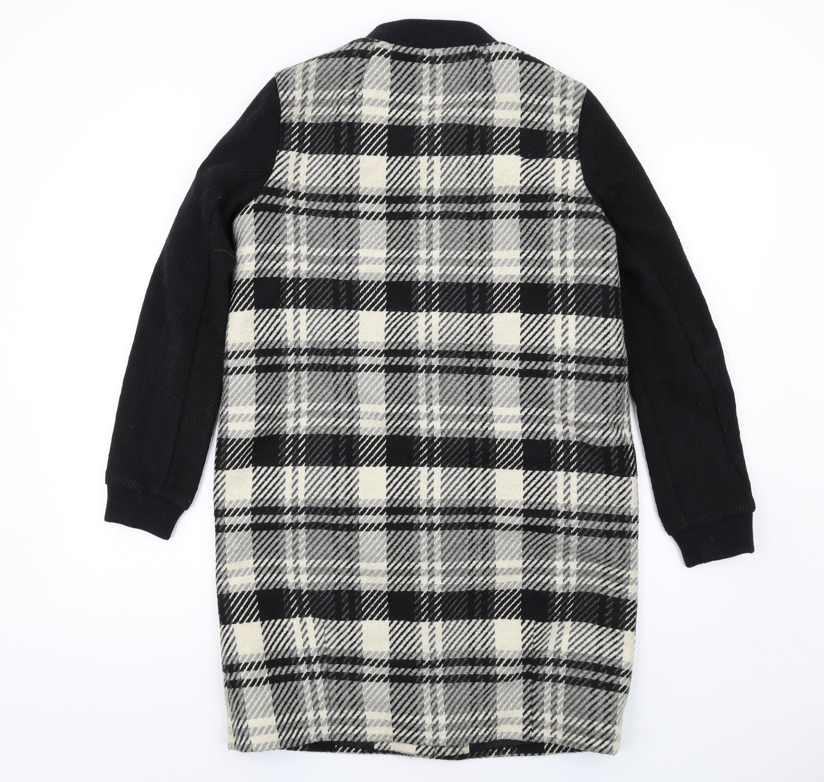 Principles Womens Black Plaid Overcoat Coat Size 8 Snap