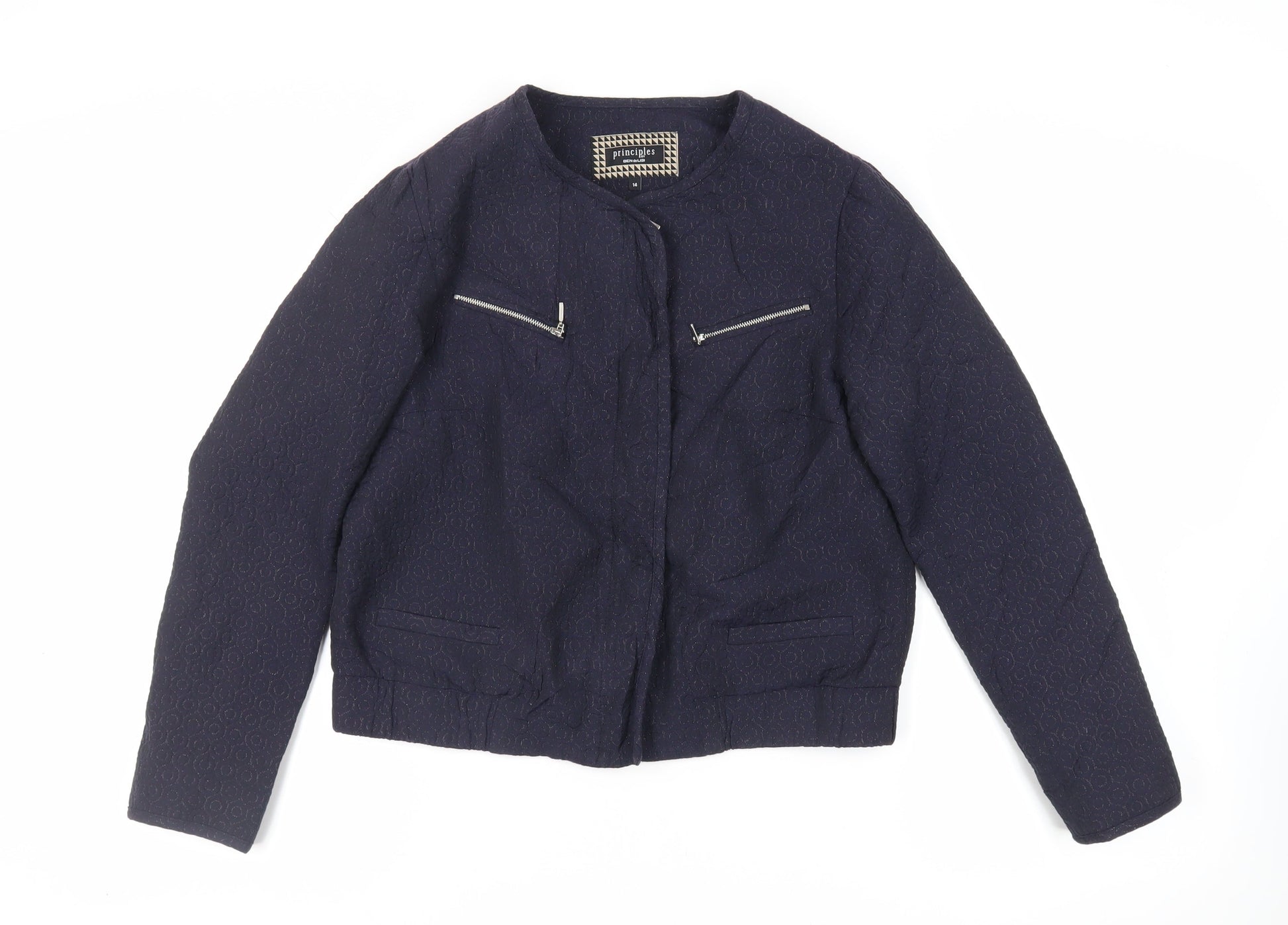 Principles Womens Blue Geometric Jacket Size 14 Zip - Textured