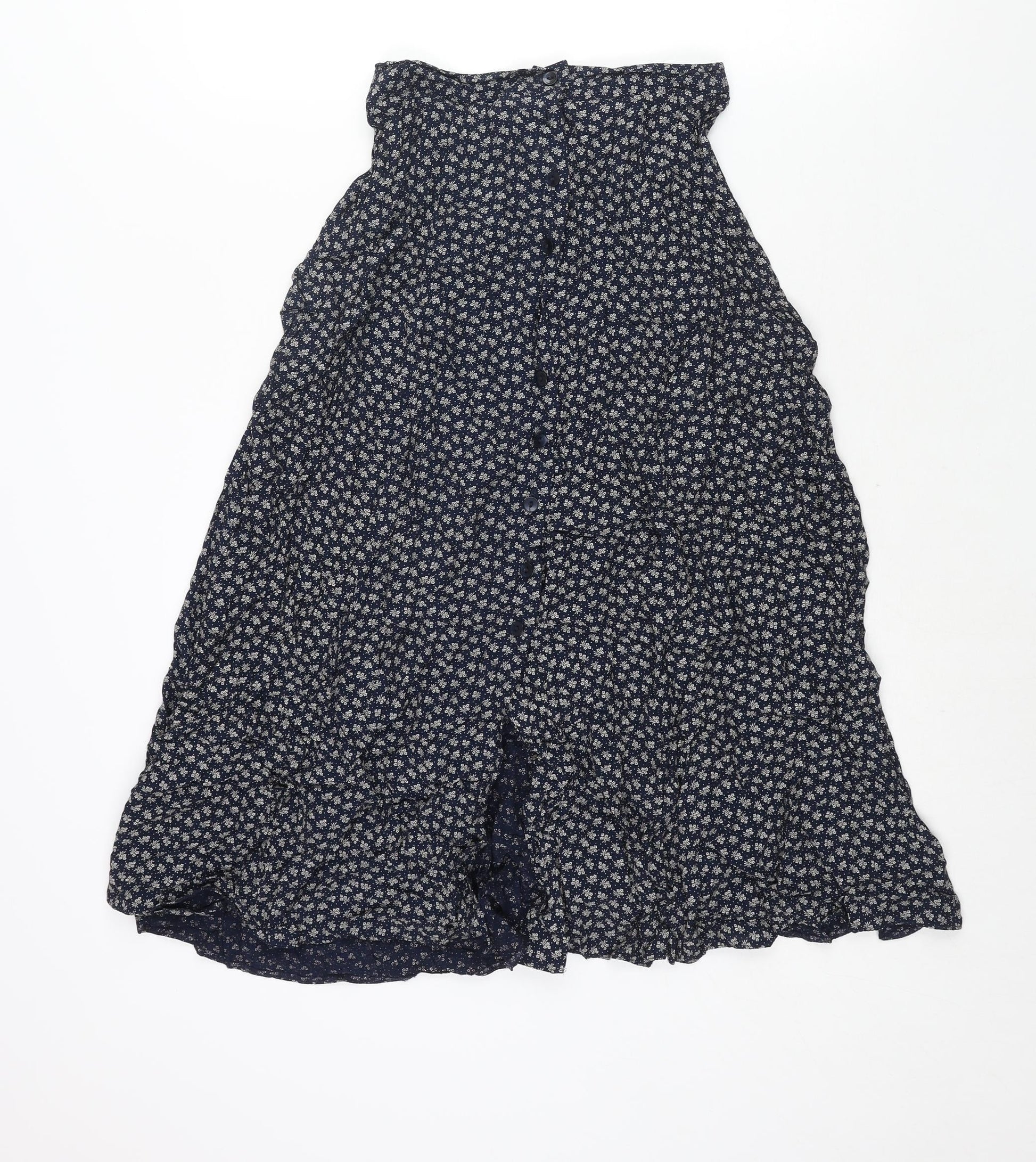 Principles Womens Blue Geometric Polyester Flare Skirt Size 24 in Button