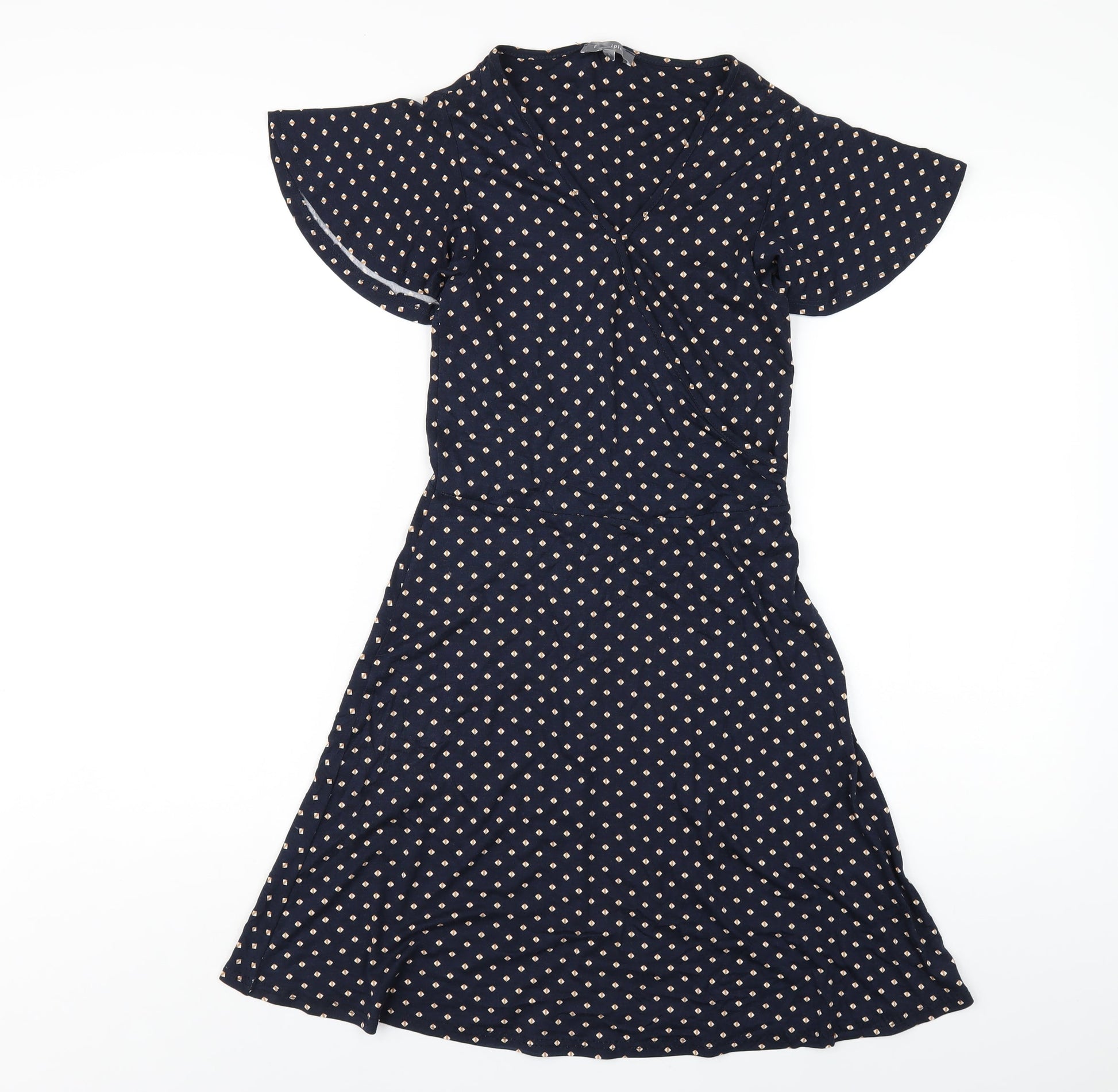 Principles Womens Blue Geometric Viscose A-Line Size 8 V-Neck Pullover