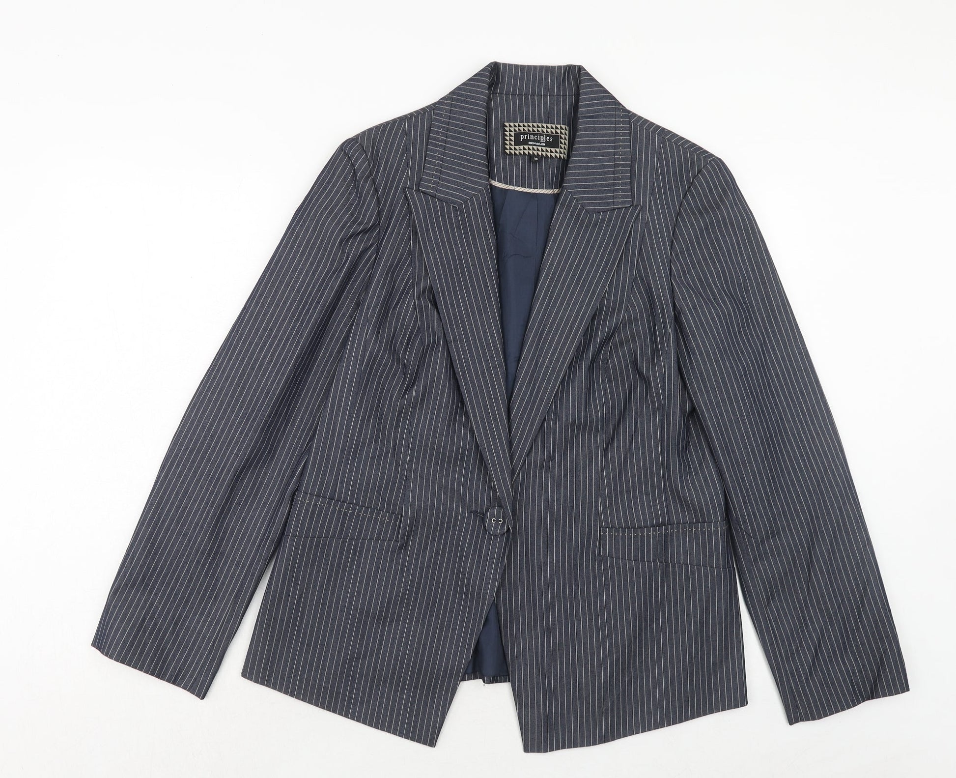 Principles Womens Blue Striped Polyester Jacket Suit Jacket Size 16