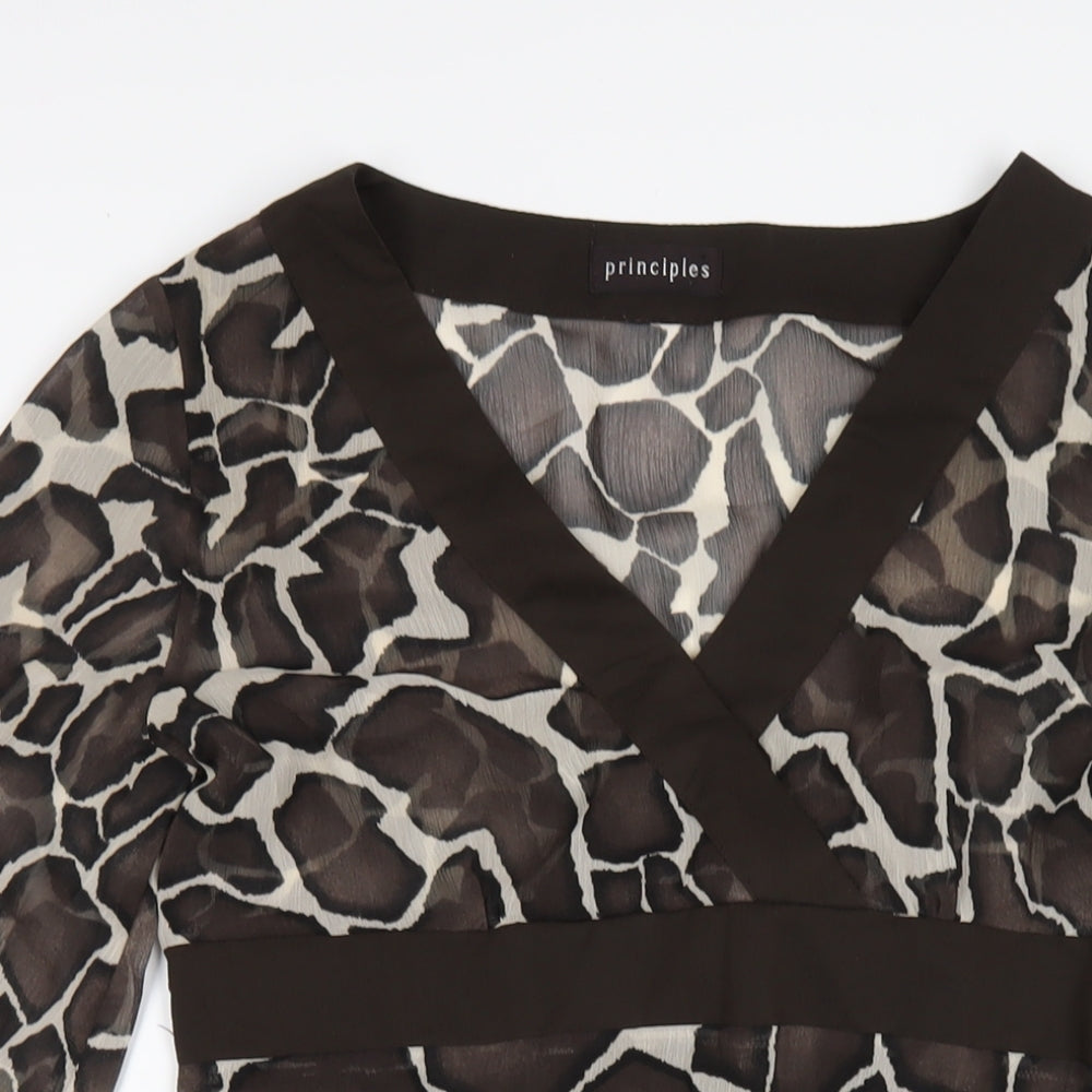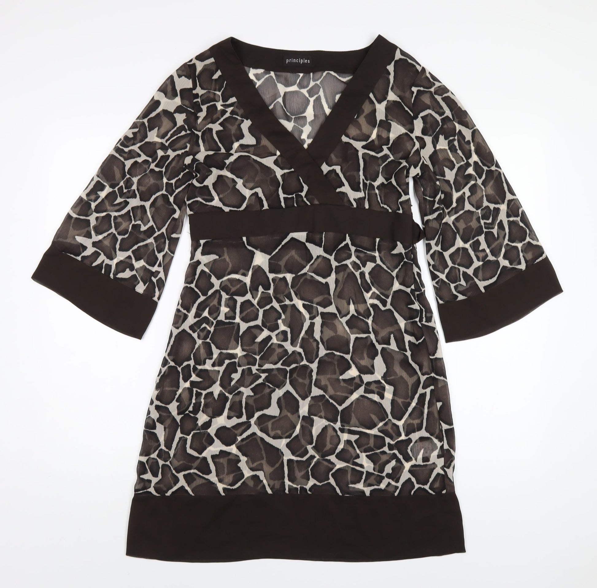 Principles Womens Brown Geometric Polyester A-Line Size 10 V-Neck Zip