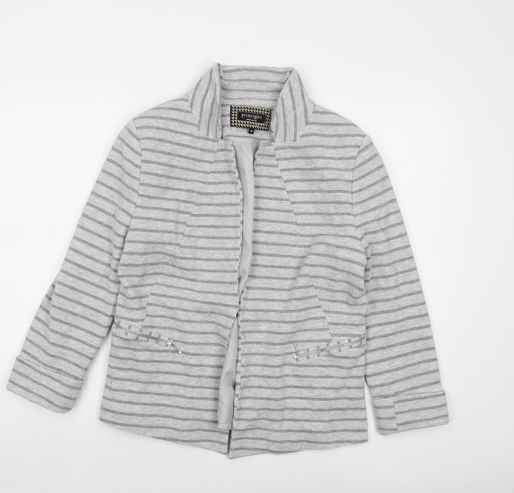 Principles Womens Grey Striped Jacket Size 14 Hook & Eye