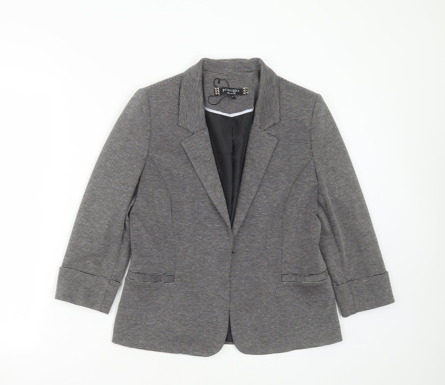 Principles Womens Grey Striped Viscose Jacket Blazer Size 10