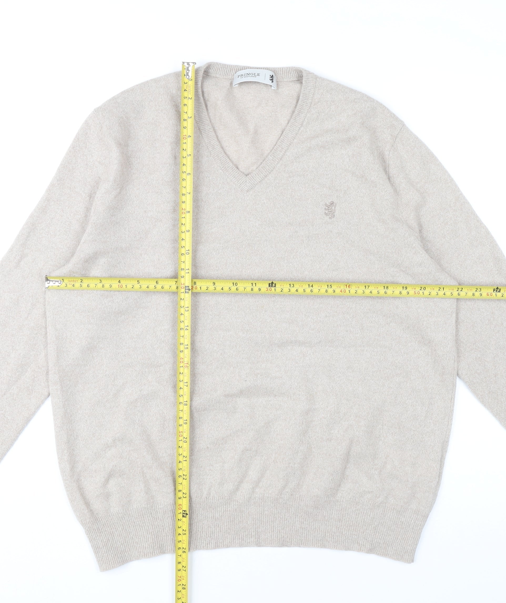 Pringle of Scotland Mens Beige Wool V-Neck Jumper L