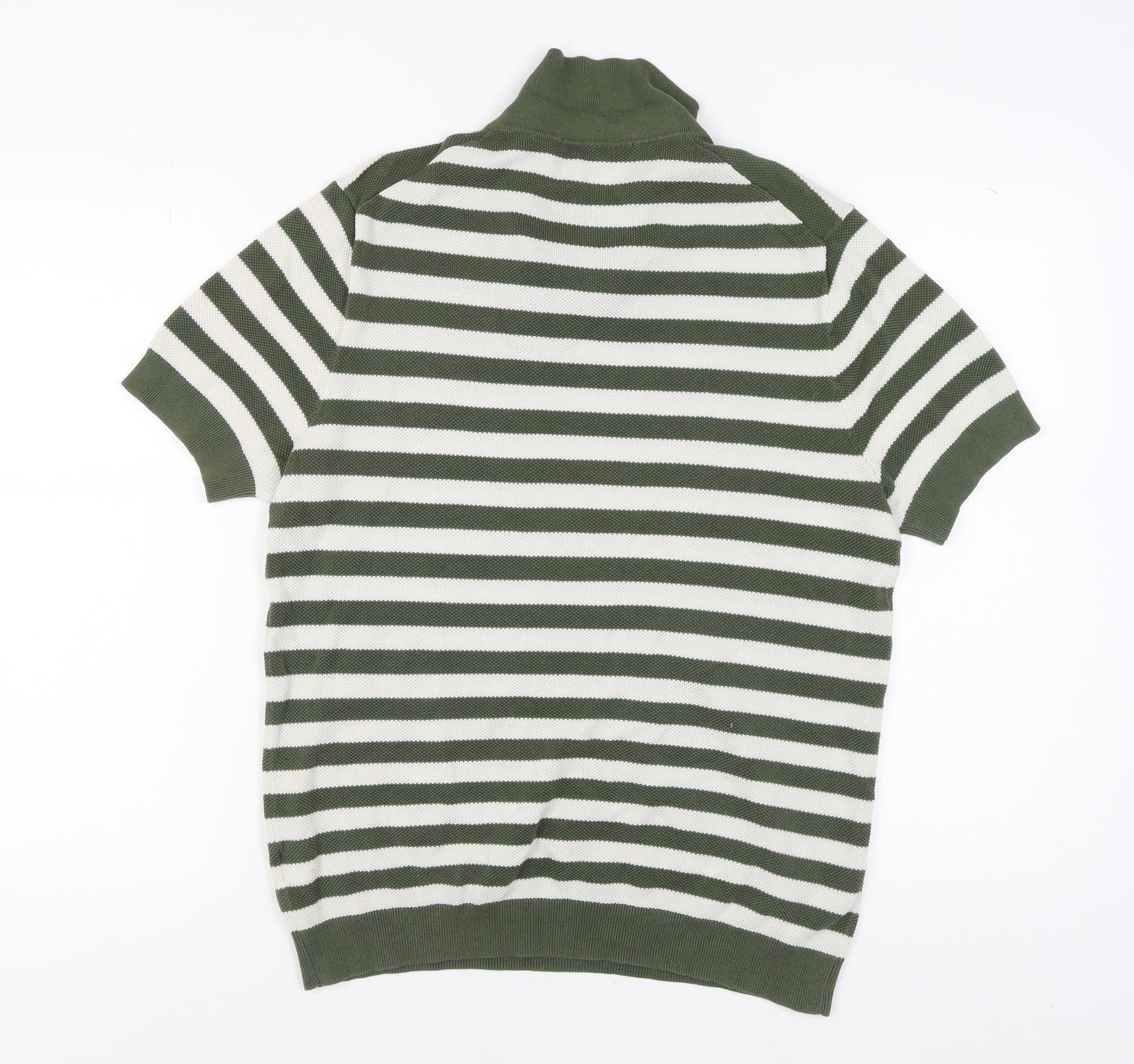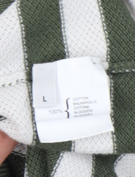 Pringle of Scotland Men's Green Striped Polo Shirt L