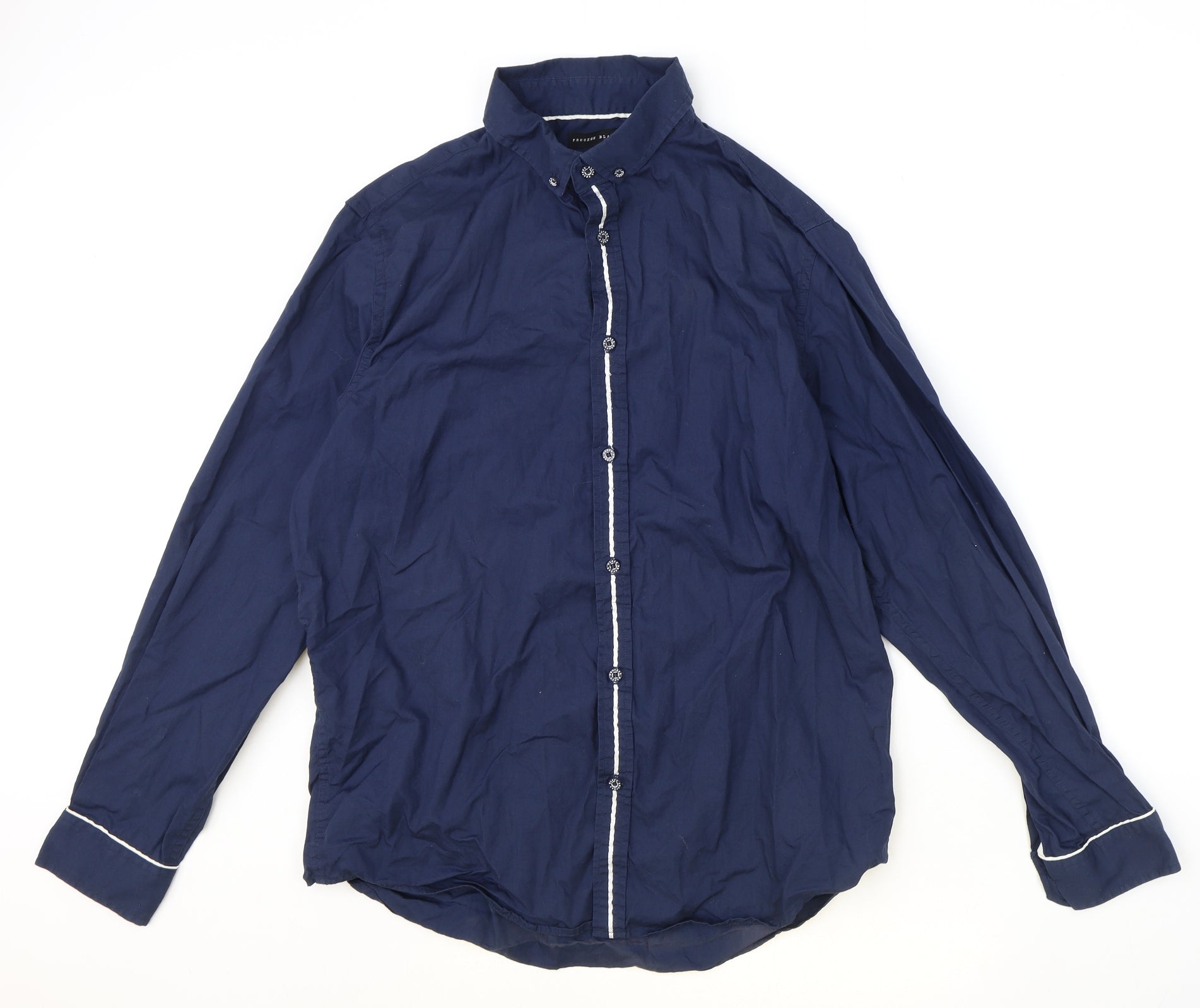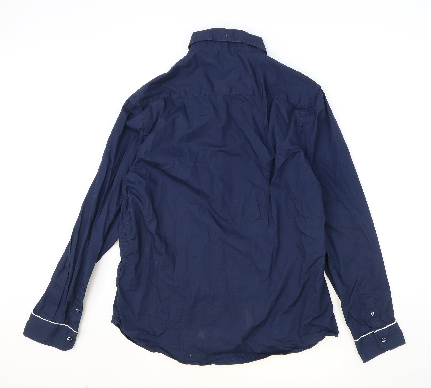 process Mens Blue Cotton Button-Up Size L Collared Button