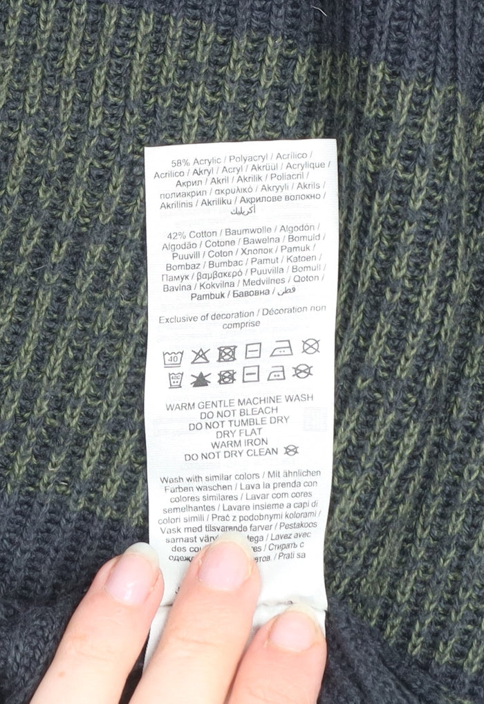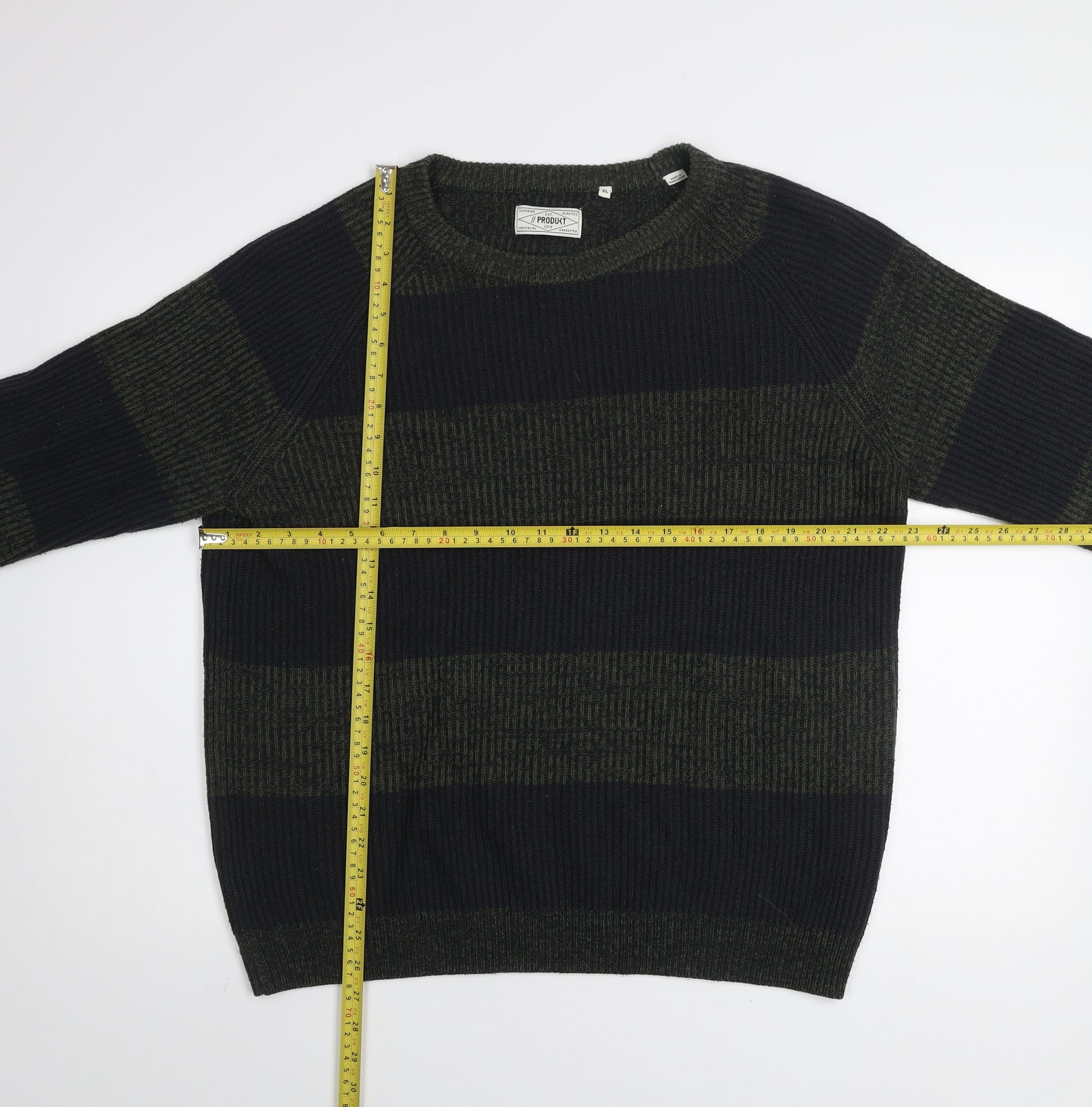 PRODUKT Mens Green Striped Knit Crew Neck Jumper XL