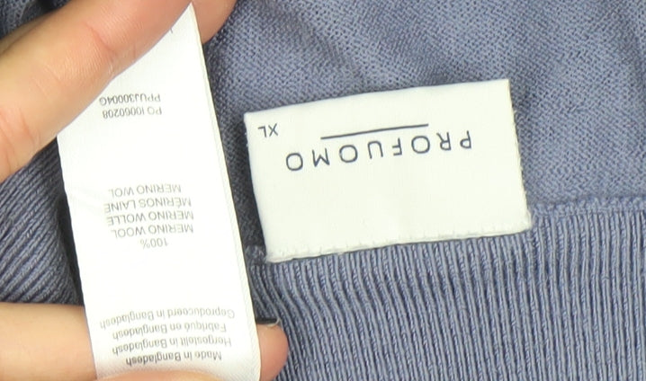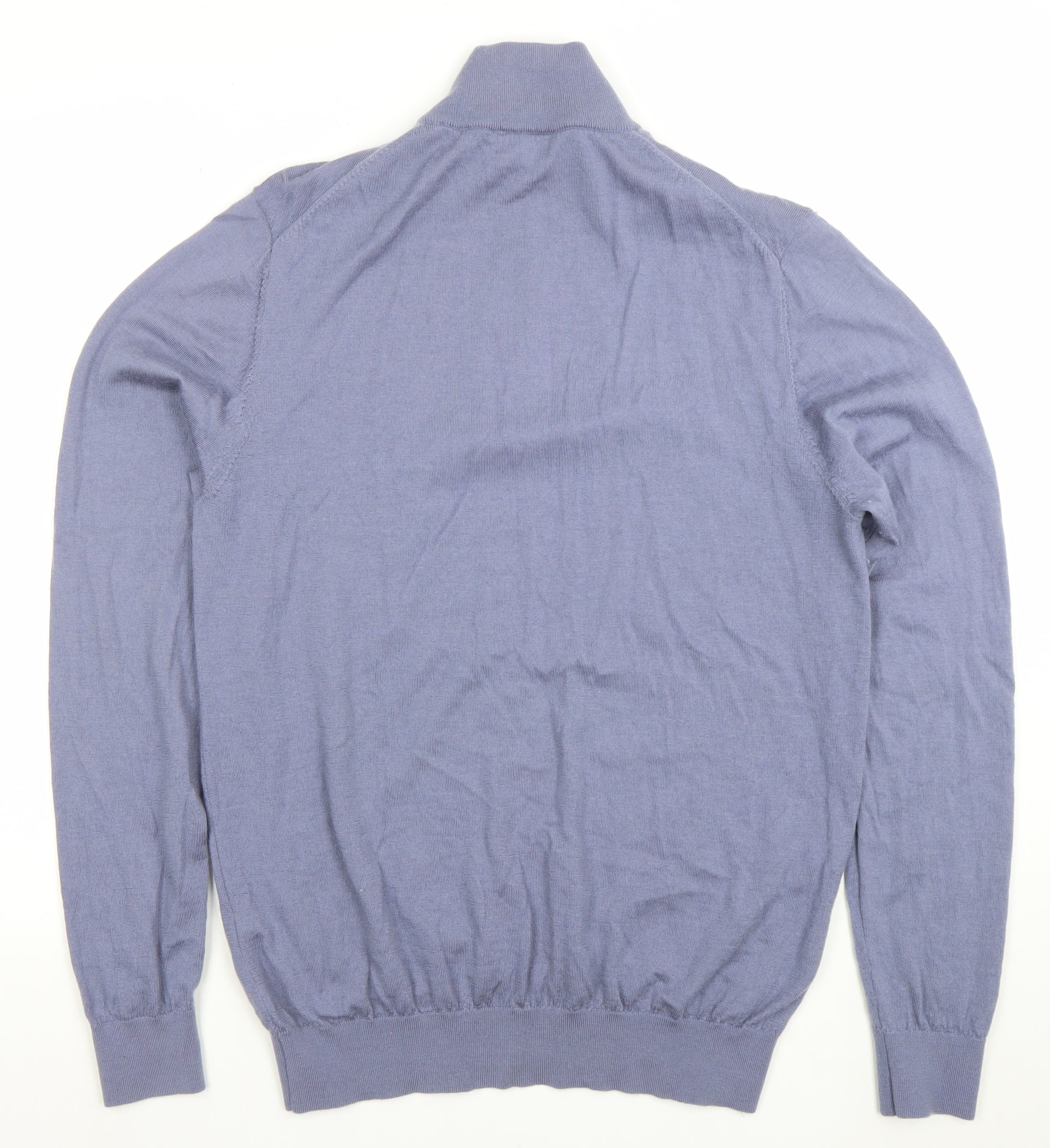 Profumo Men's Blue XL Merino Wool 1/2 Zip High Neck Jumper