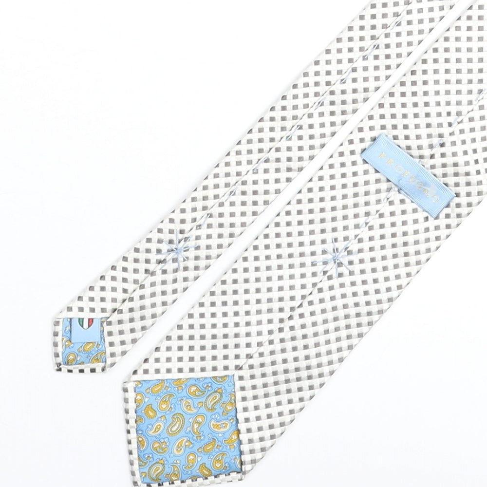 Profuomo Mens Grey Plaids & Checks Silk Pointed Tie One Size