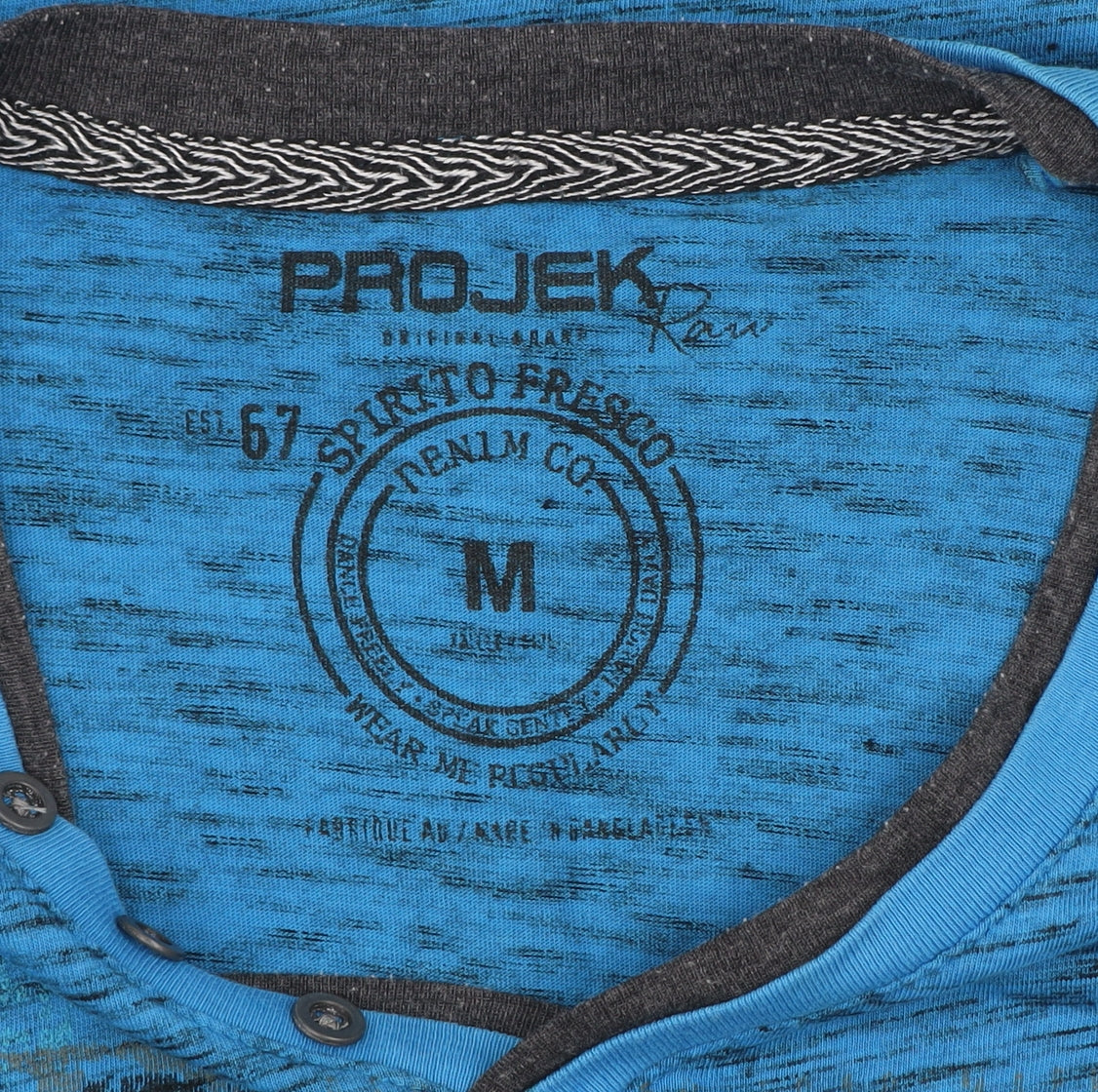 Projek Raw Men's Blue Slim Fit Graphic V-Neck Short Sleeve T-Shirt M