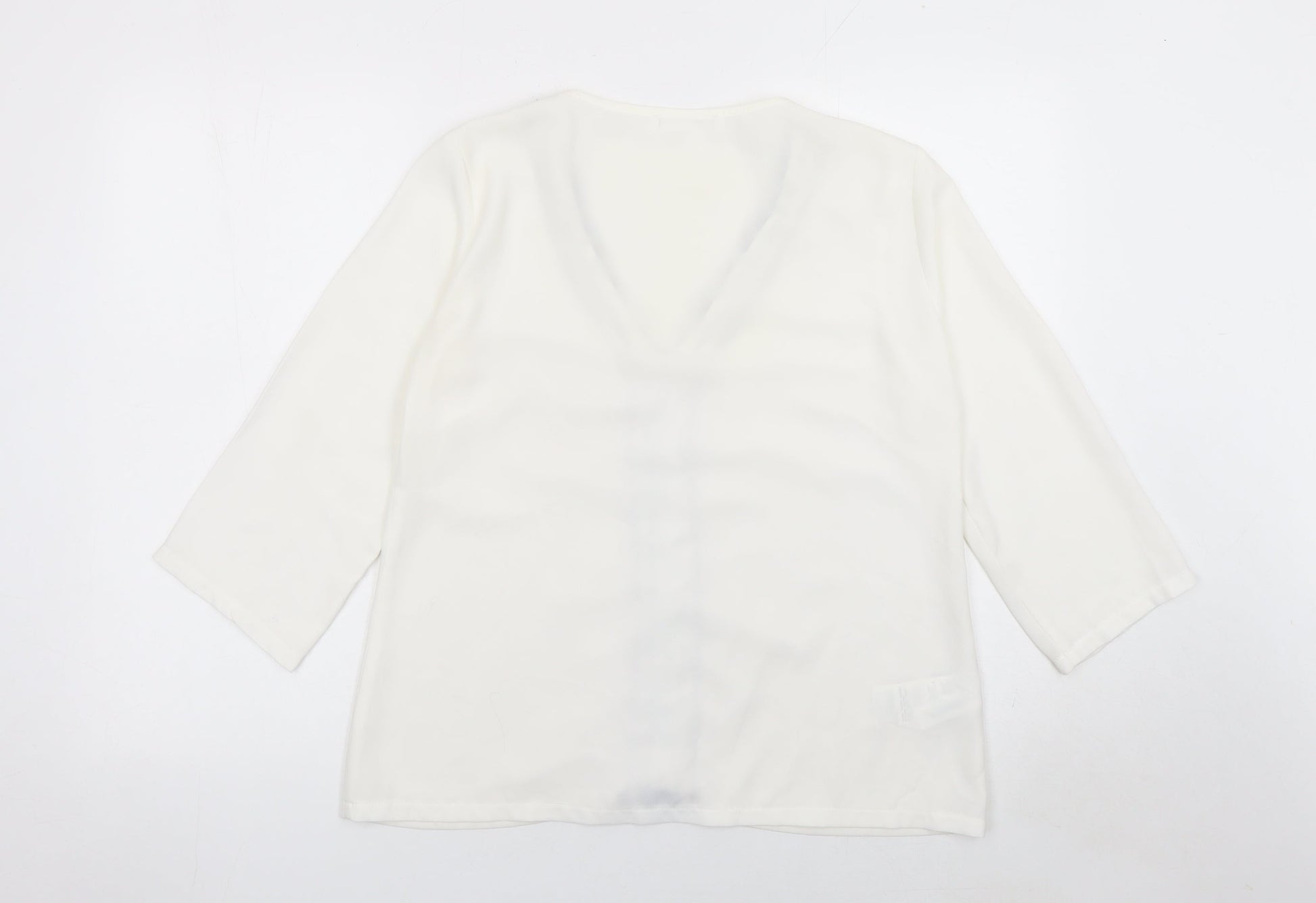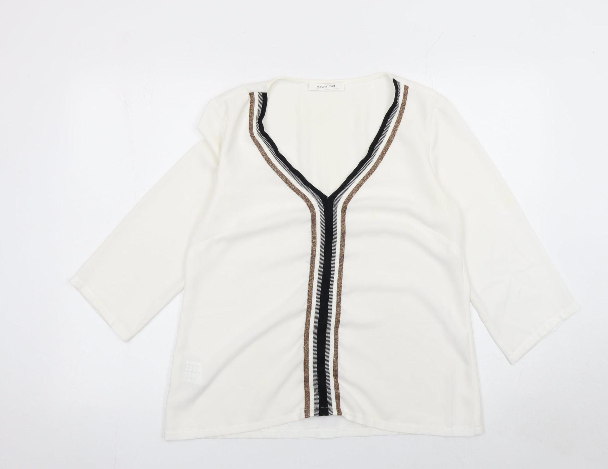 Promod Women Ivory V-Neck 3/4 Sleeve Blouse Size 10