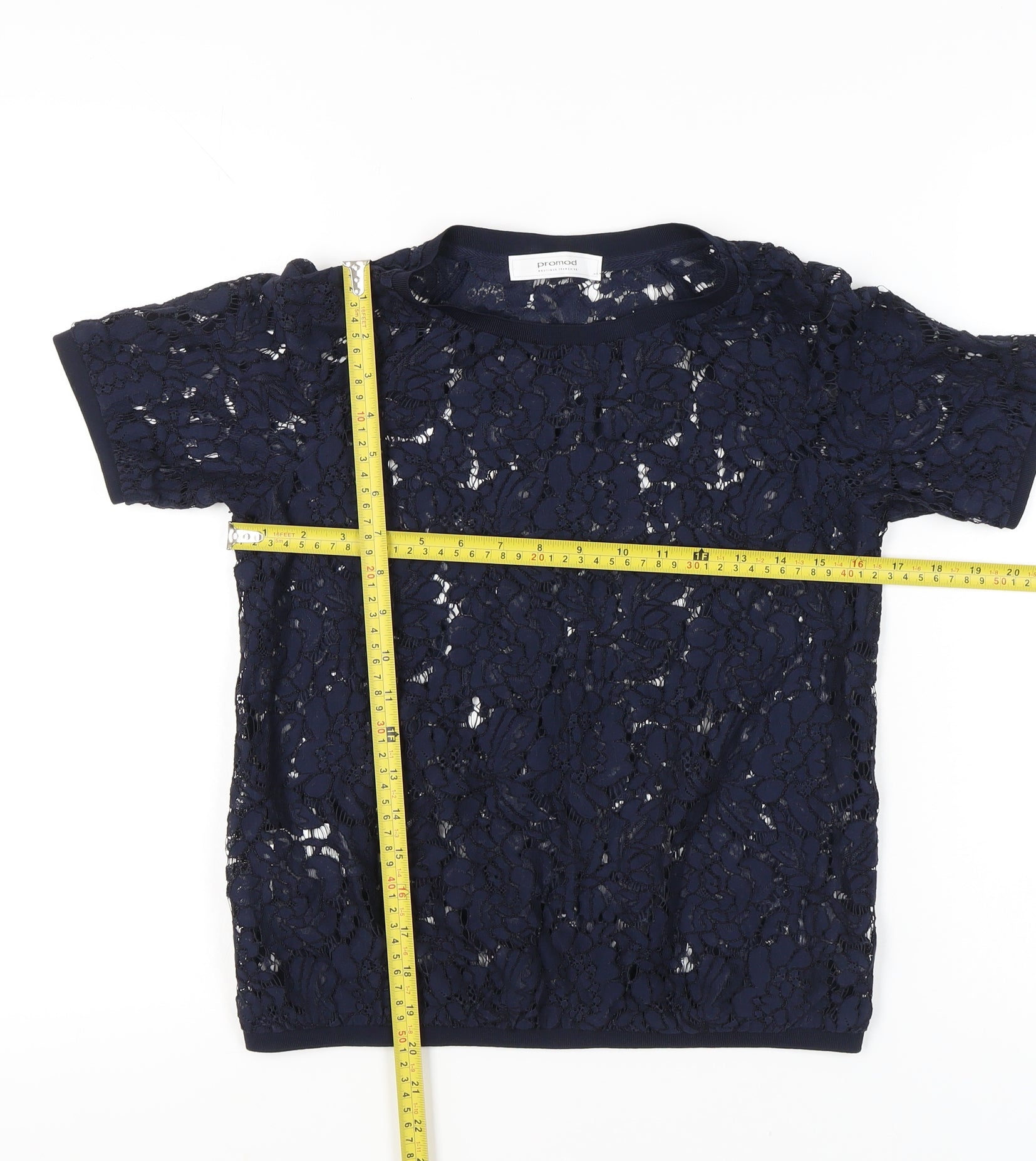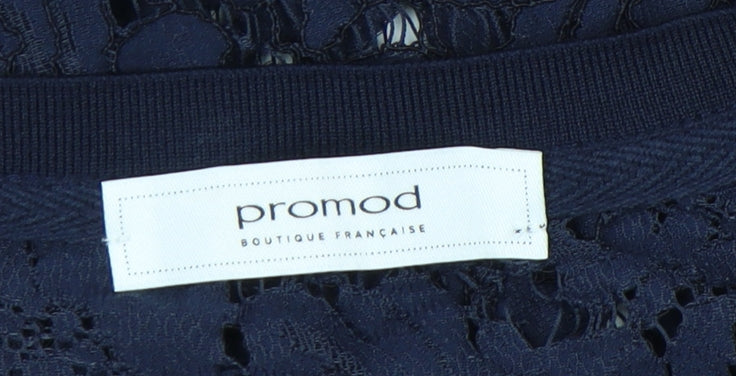 Promod Women’s Blue Lace Floral Sheer Short Sleeve Top Size 6