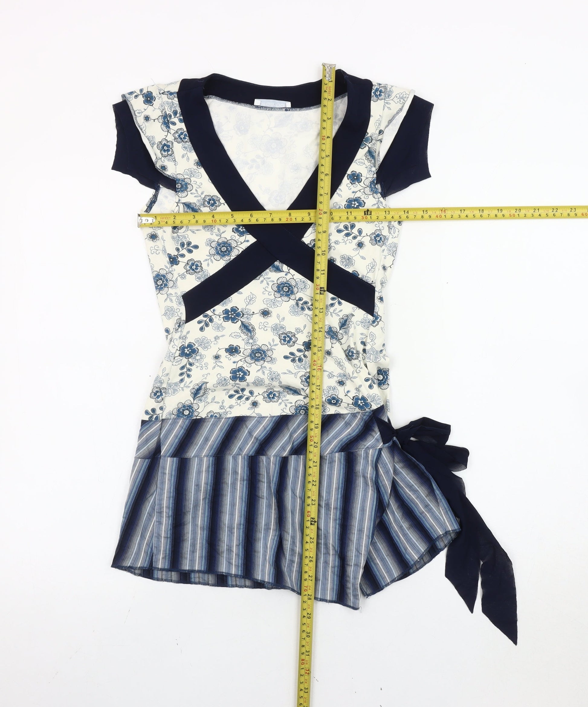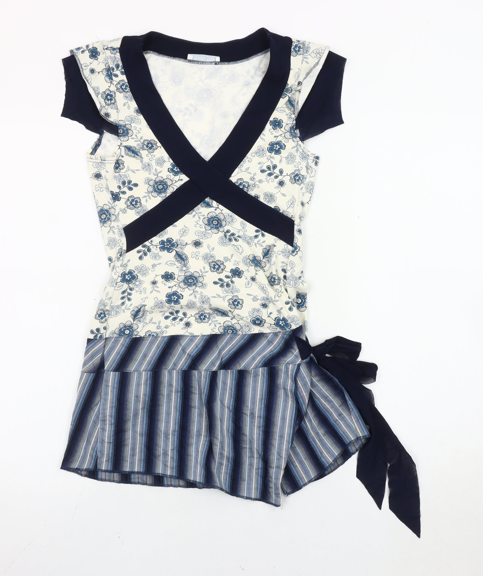 Promod Women’s Blue White Wrap Blouse Size 14 Floral Striped