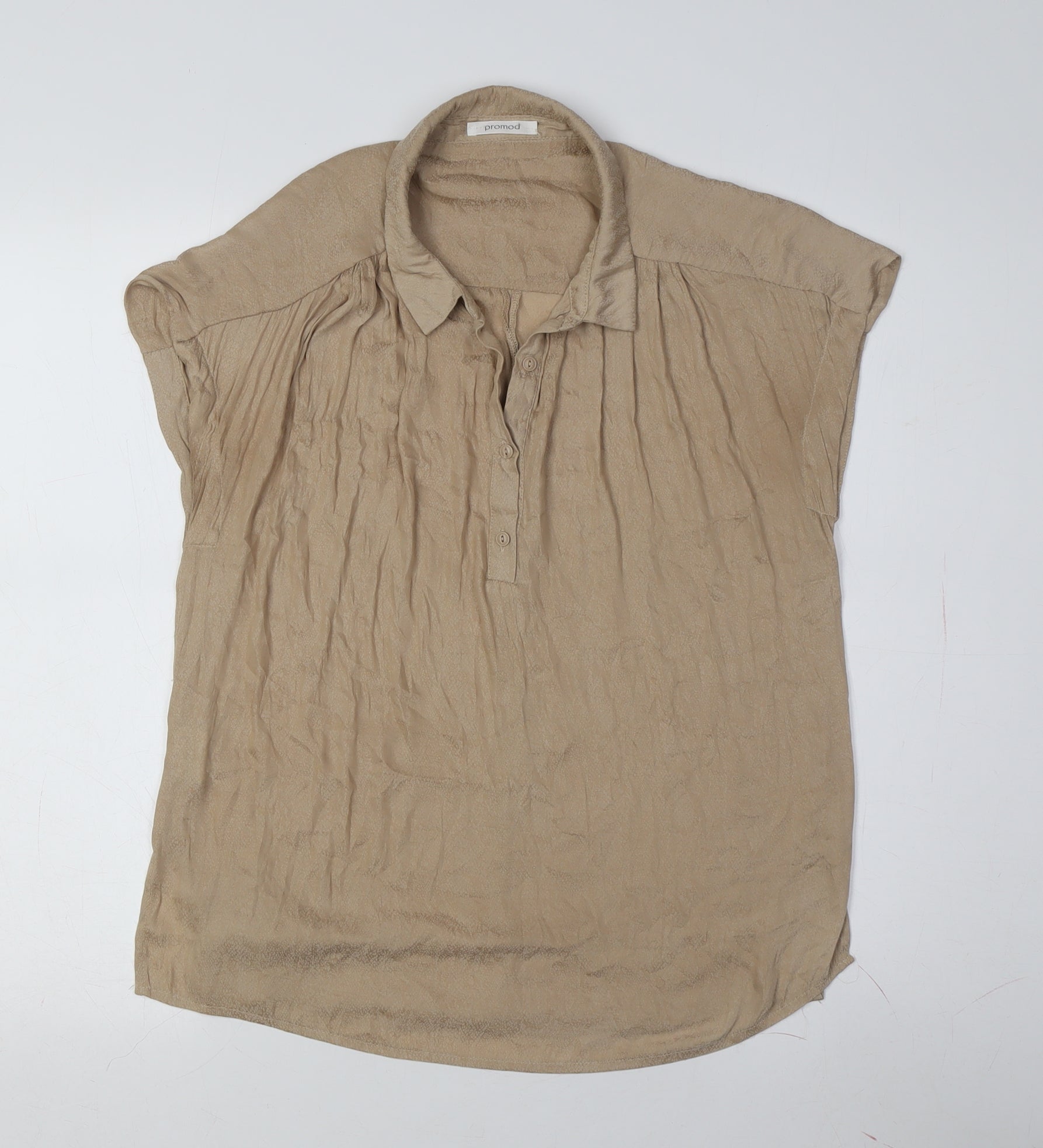 Promod Women's Beige Short Sleeve Blouse Size 10
