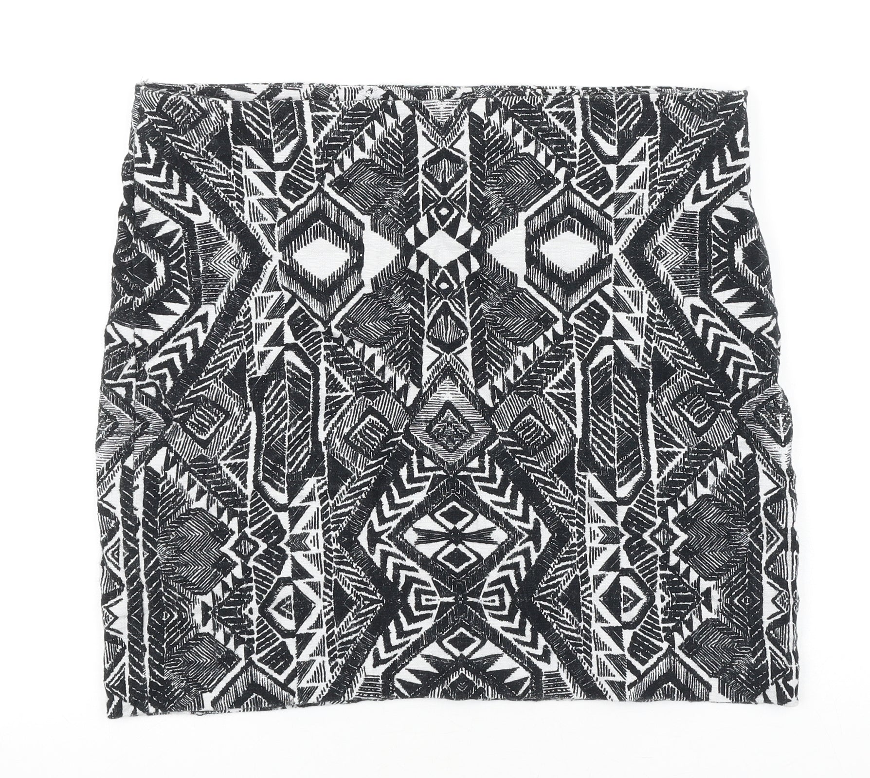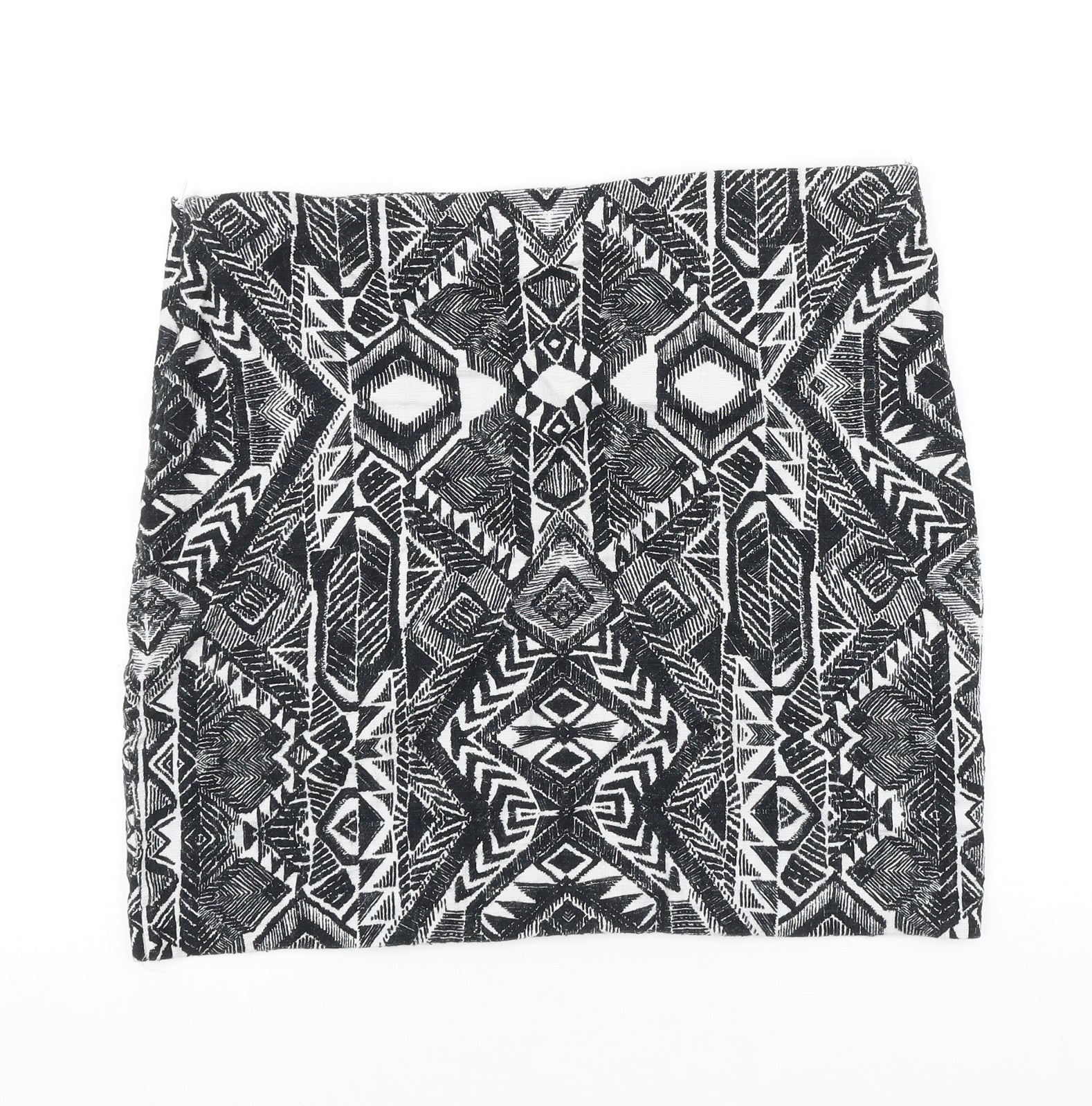 Promod Womens Black Geometric Polyester A-Line Skirt Size 35 in Zip