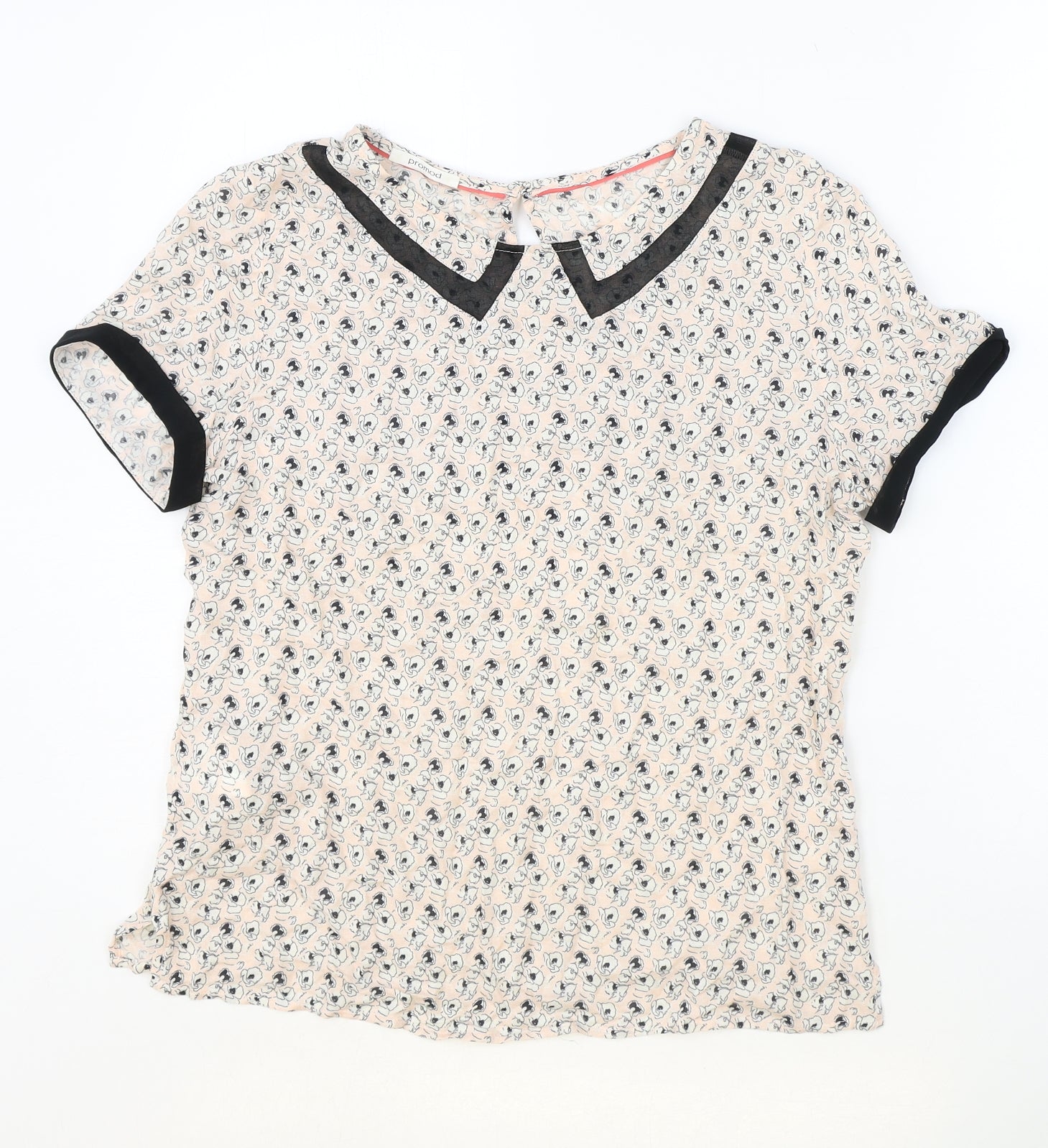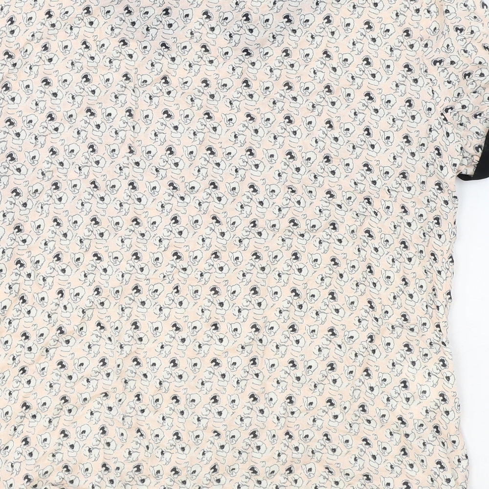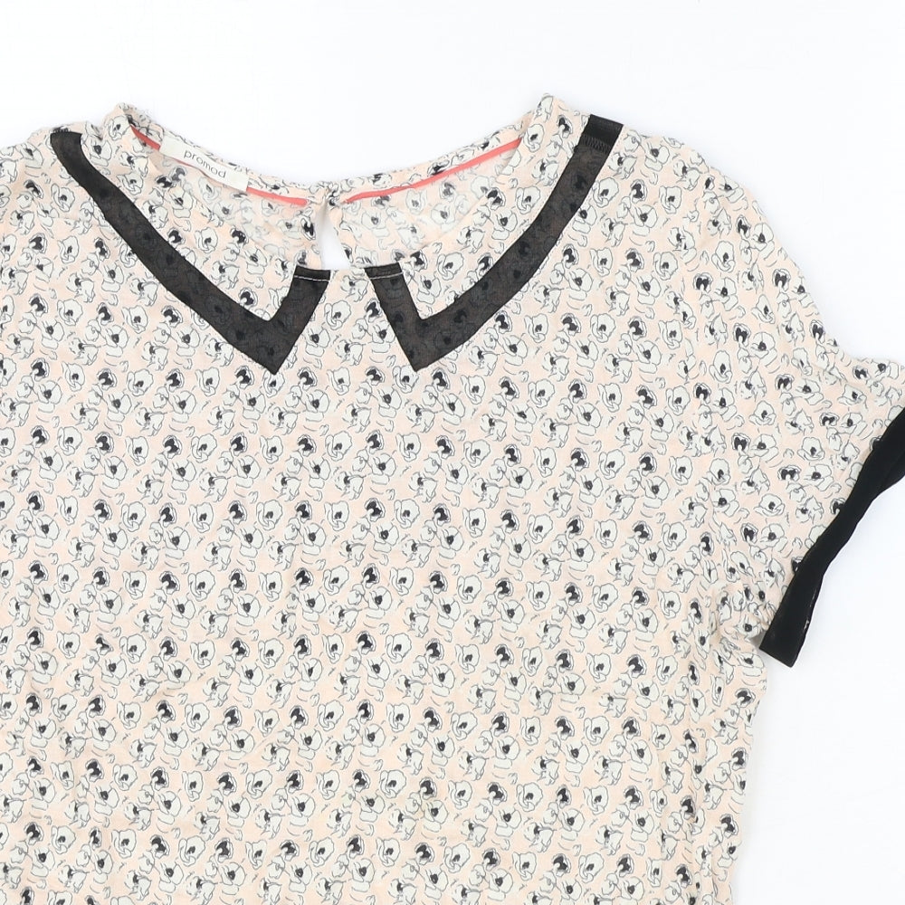 Promod Womens Pink Geometric Viscose Basic Blouse Size 10 Round Neck