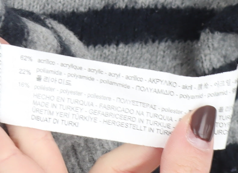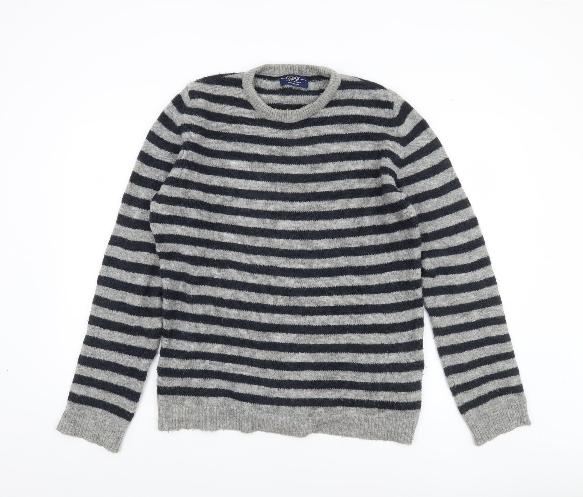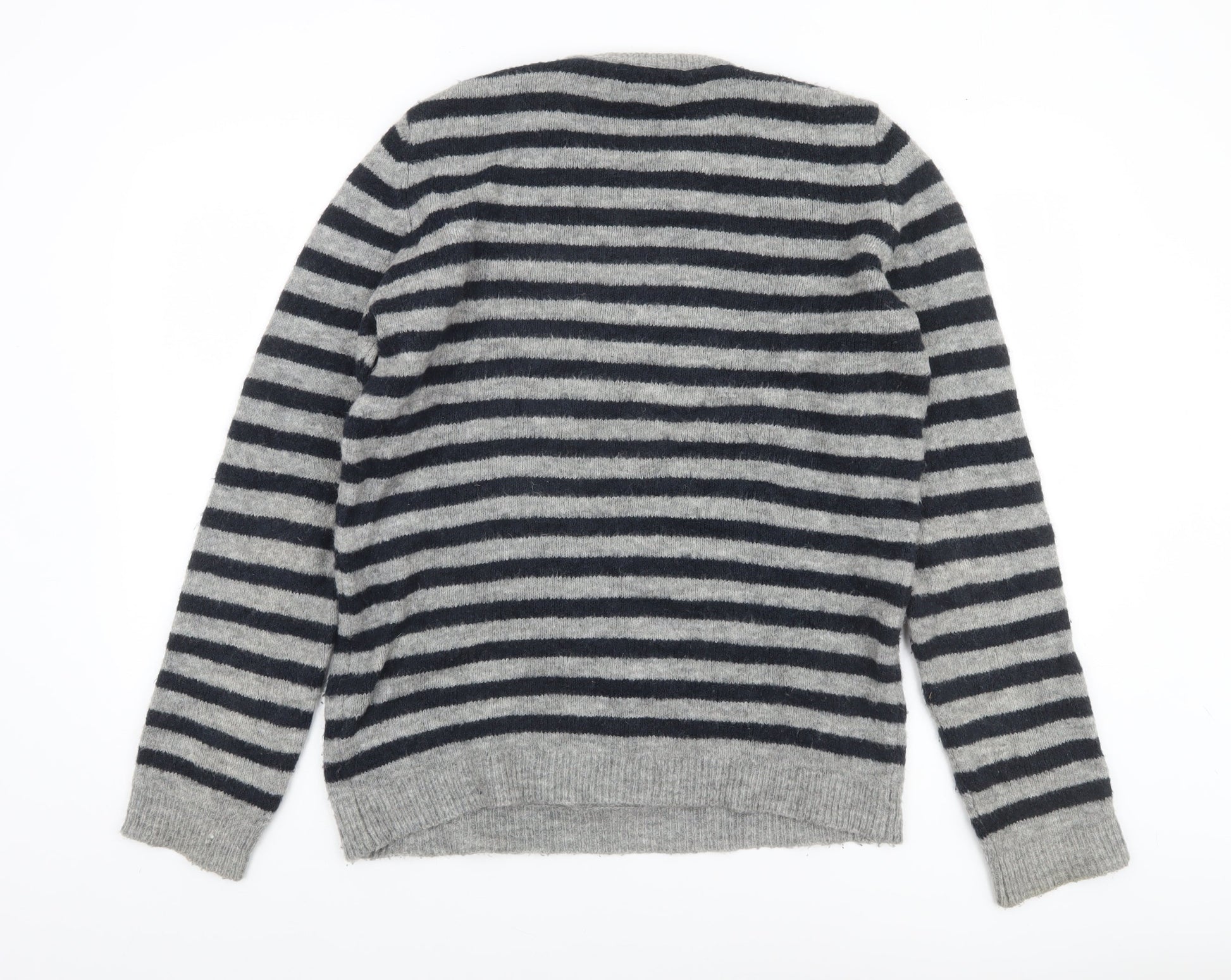Pull & Bear Men’s Grey Striped Crew Neck Wool Blend Jumper Size M