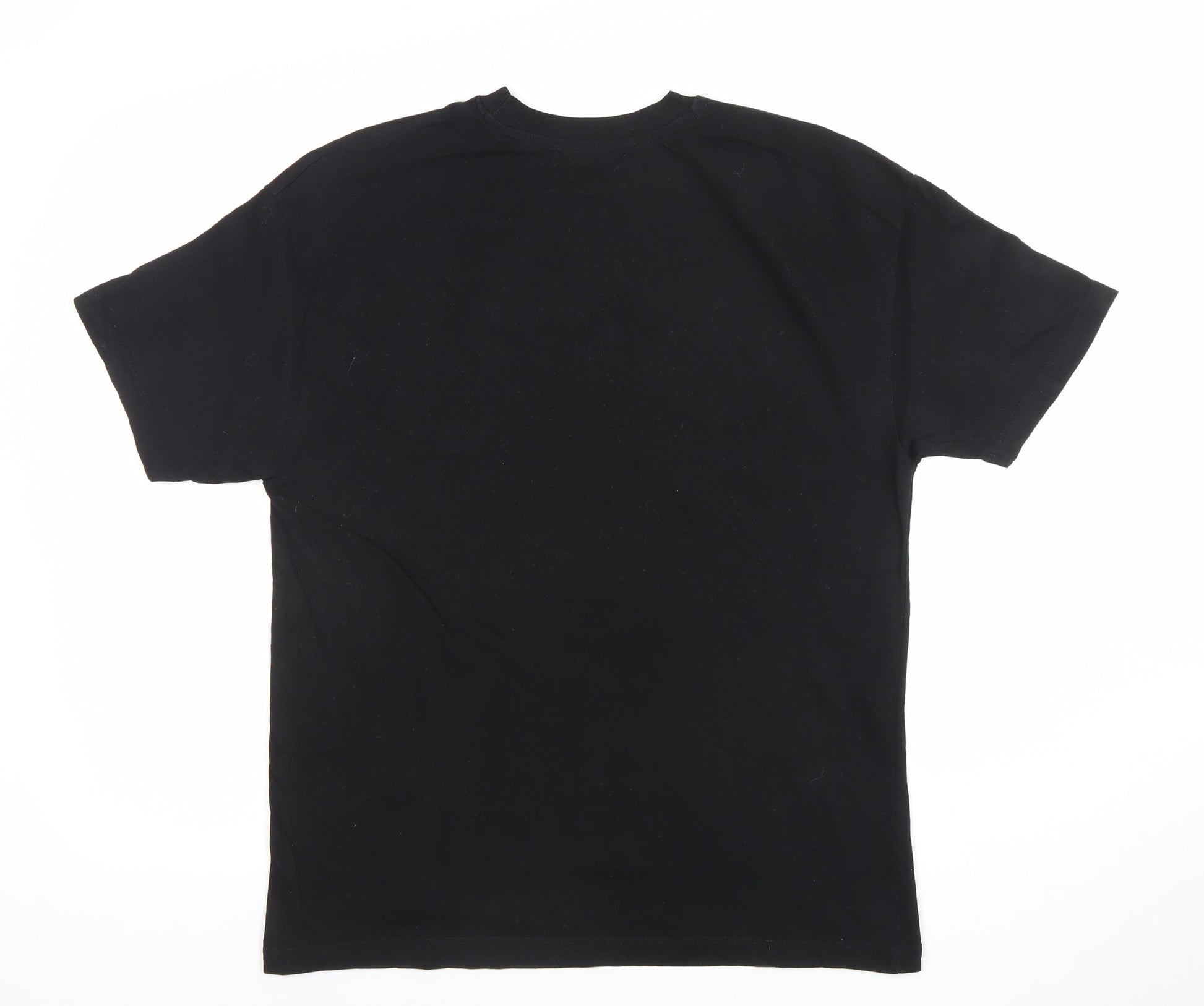 Pull & Bear Men's Black Cotton Crew Neck Short Sleeve T-Shirt Size S
