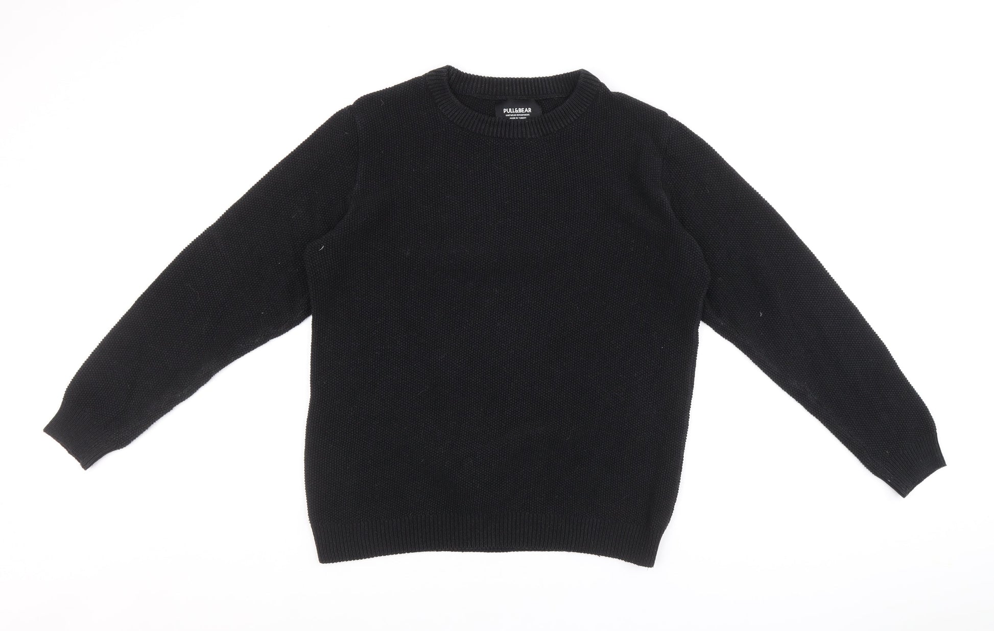 Pull&Bear Mens Black Crew Neck Polyester Pullover Jumper Size M Long Sleeve
