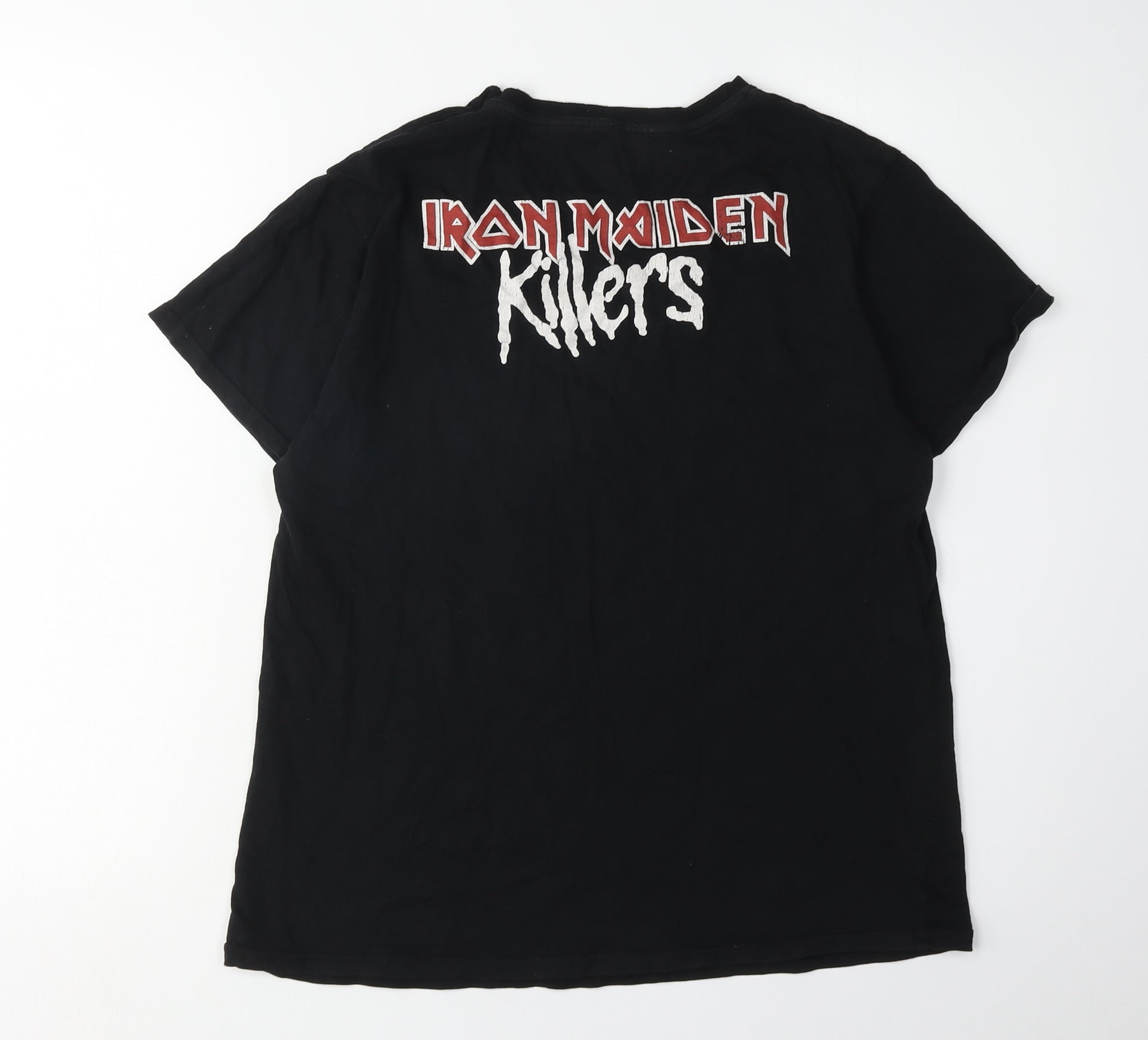 Pull & Bear Men's Black Iron Maiden Band T-Shirt, Size S
