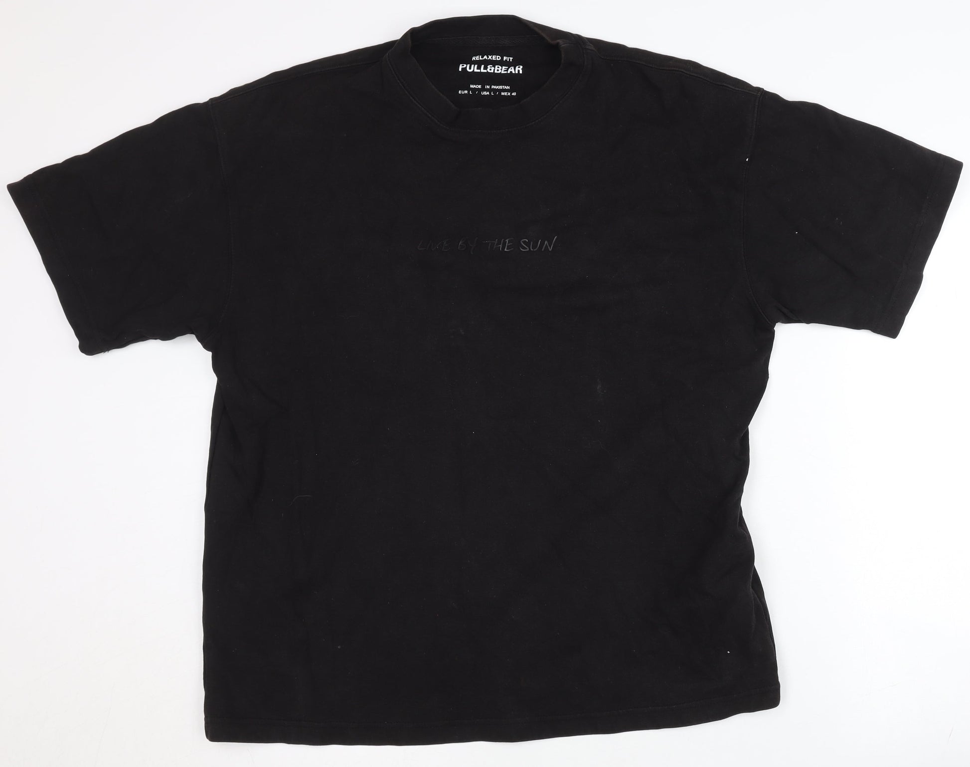 Pull&Bear Men's Black Relaxed Fit T-Shirt - L