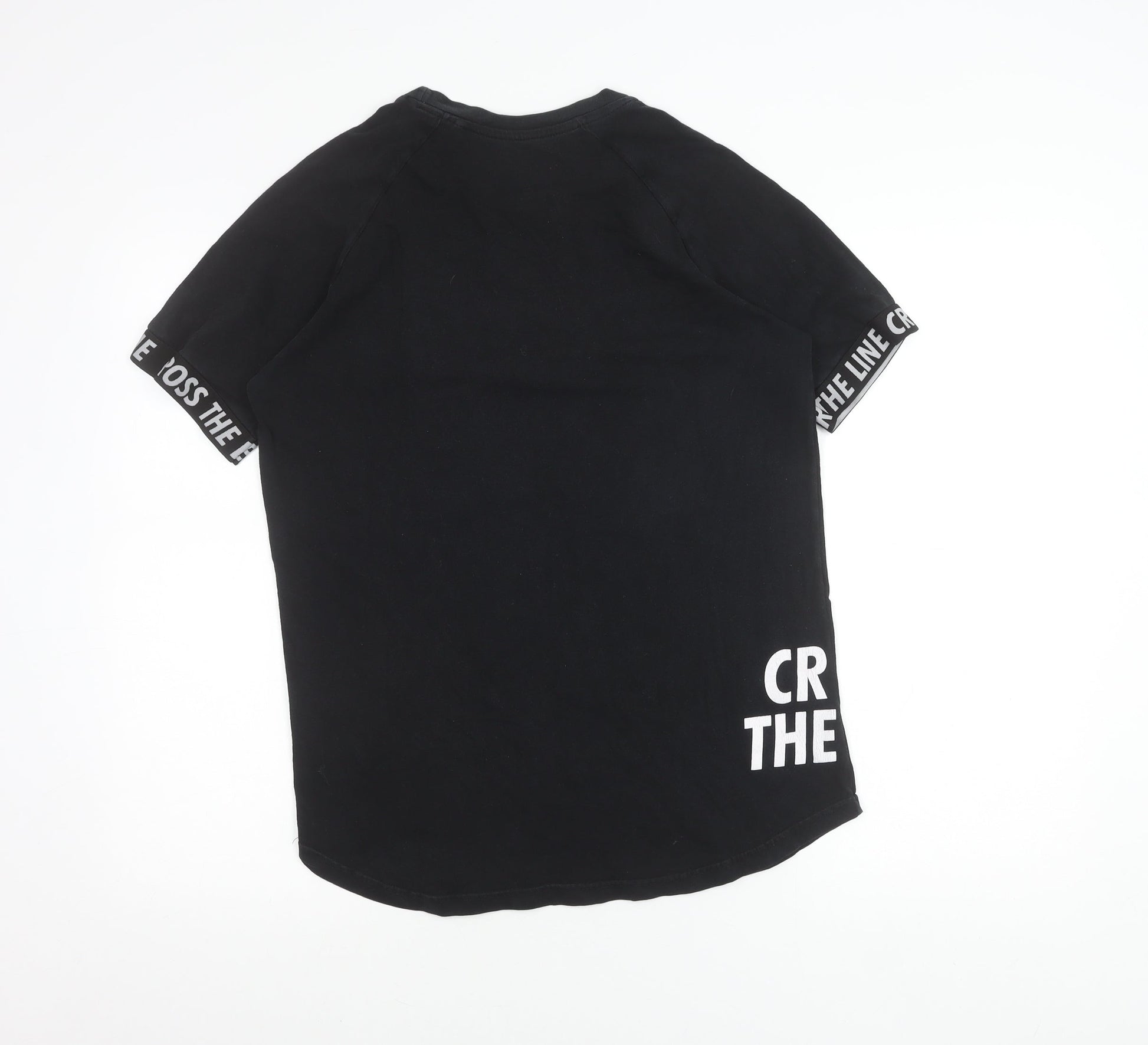 Pull&Bear Men's Black S Graphic Print Crew Neck T-Shirt