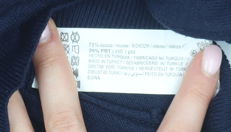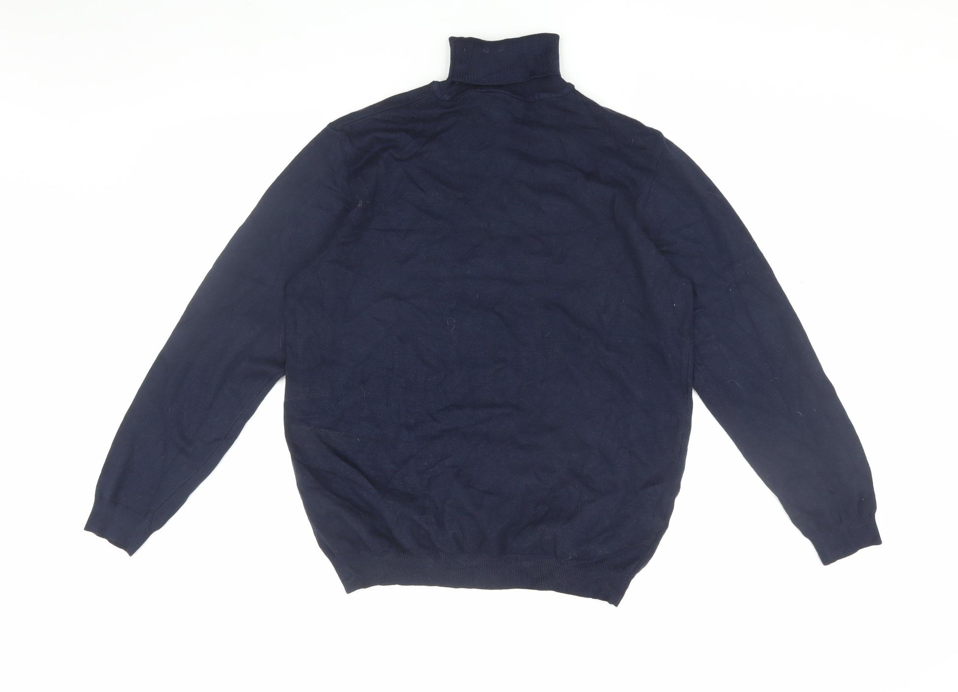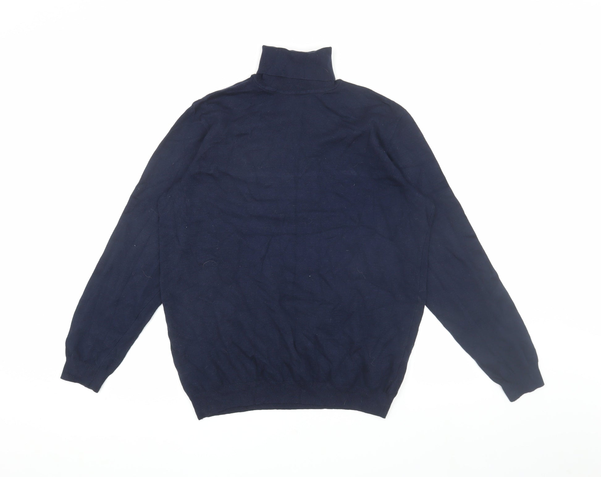 Pull&Bear Men's Blue High Neck Pullover Jumper Size 12