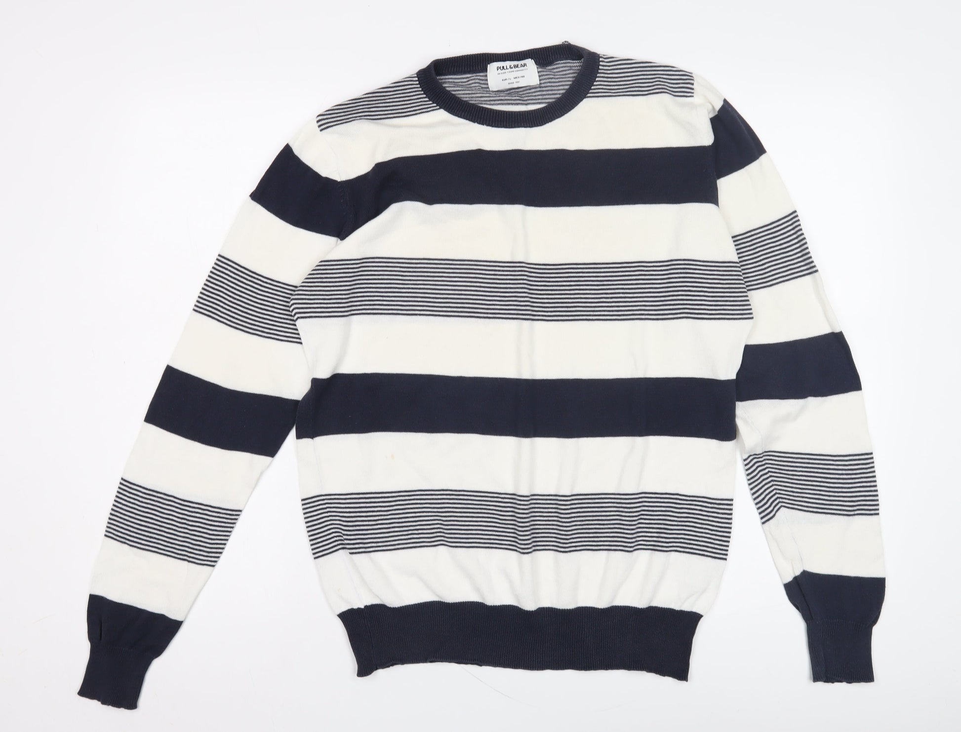 PULL&BEAR Men's Blue L Striped Pullover Jumper