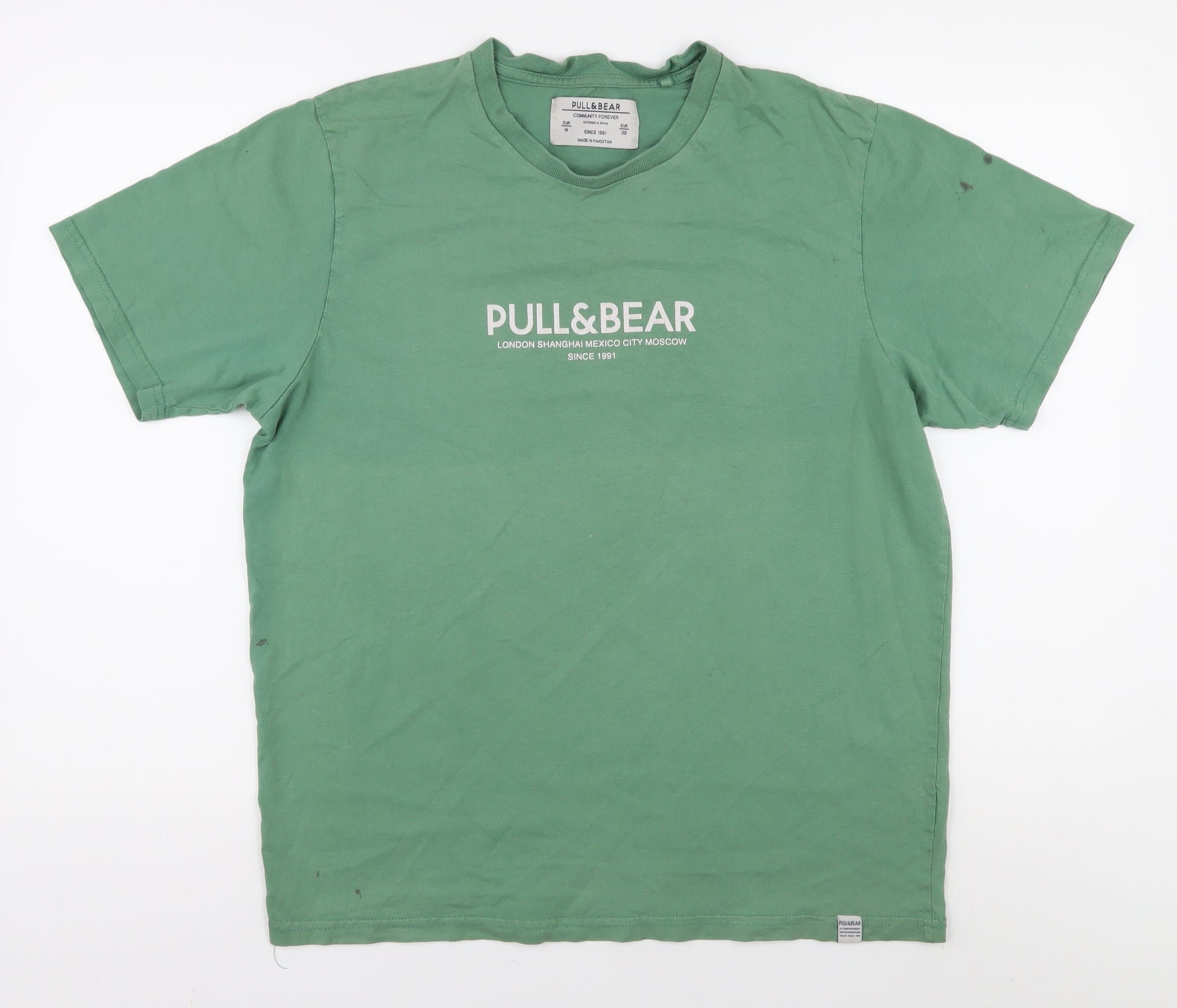 Pull & Bear Men's Green Size 10 Crew Neck T-Shirt