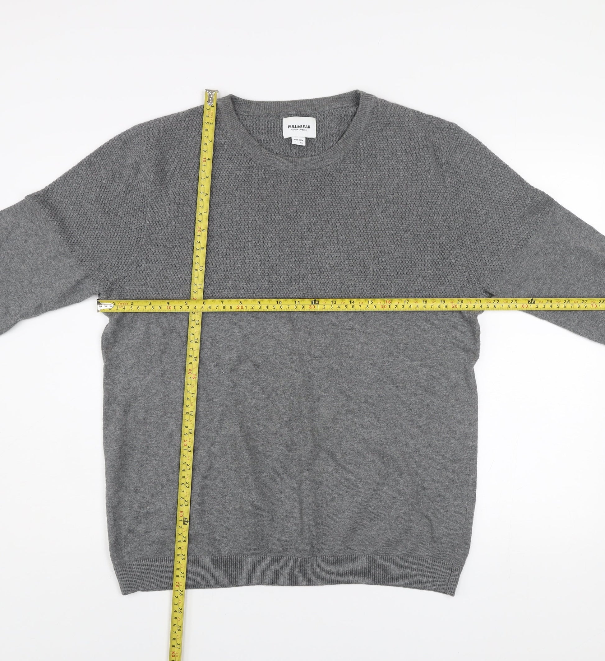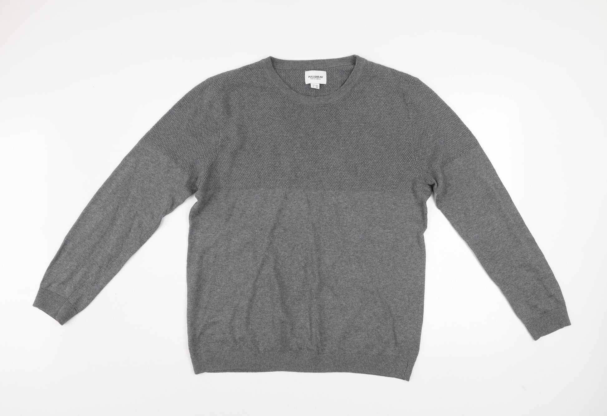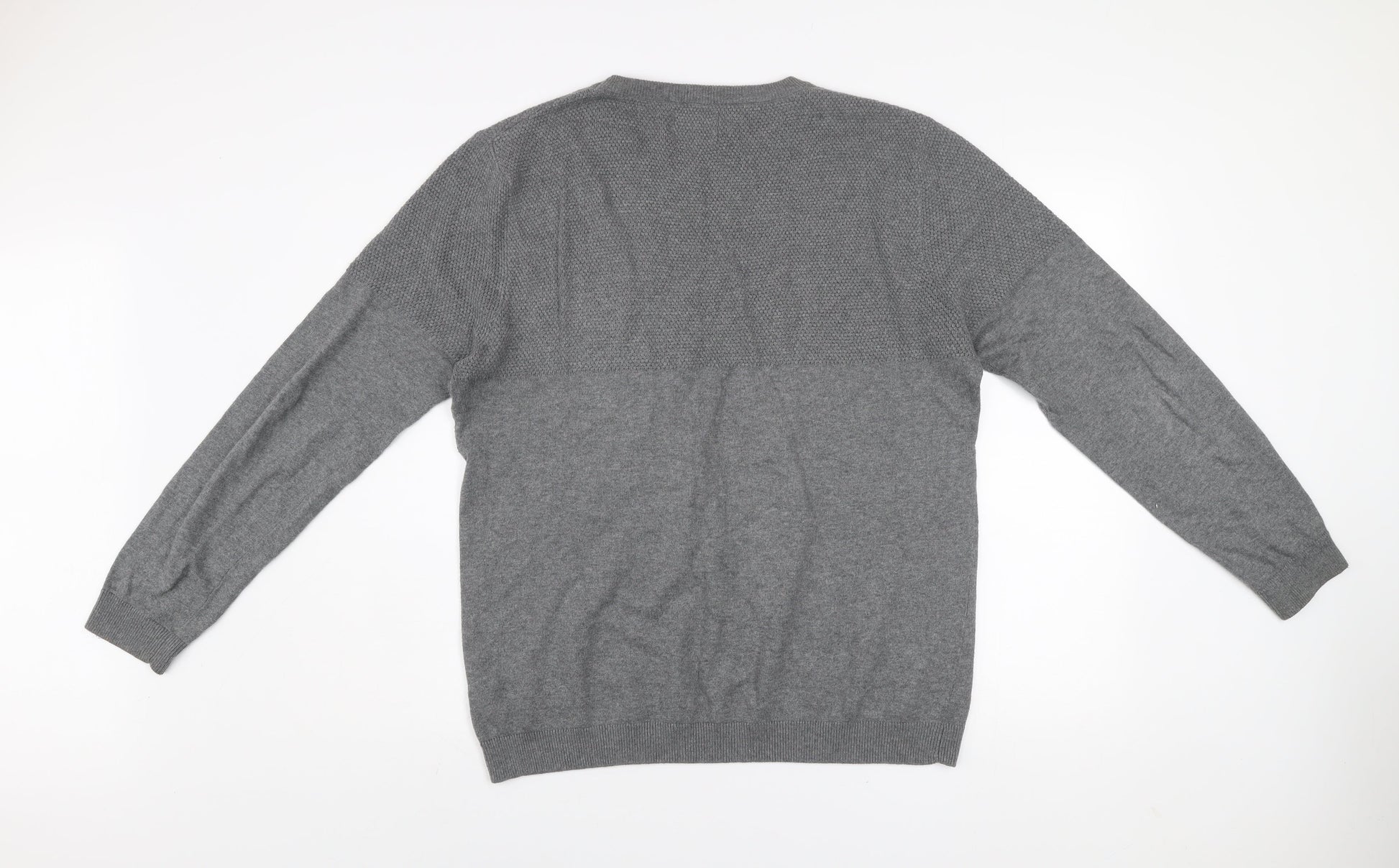 Pull & Bear Men's Grey Cotton Crew Neck Jumper Size L