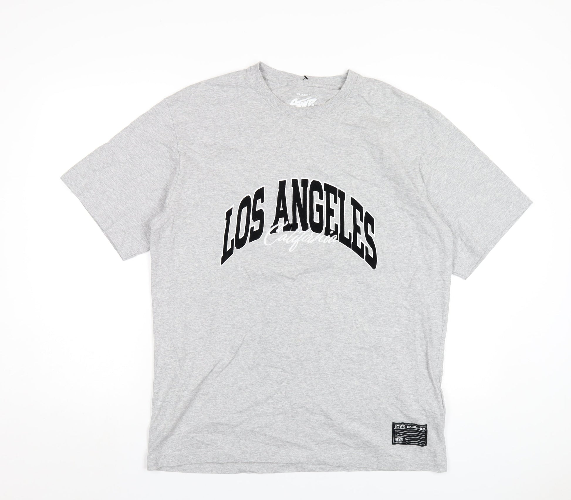 Pull&Bear Mens Grey Cotton T-Shirt Size L Round Neck - Los Angeles
