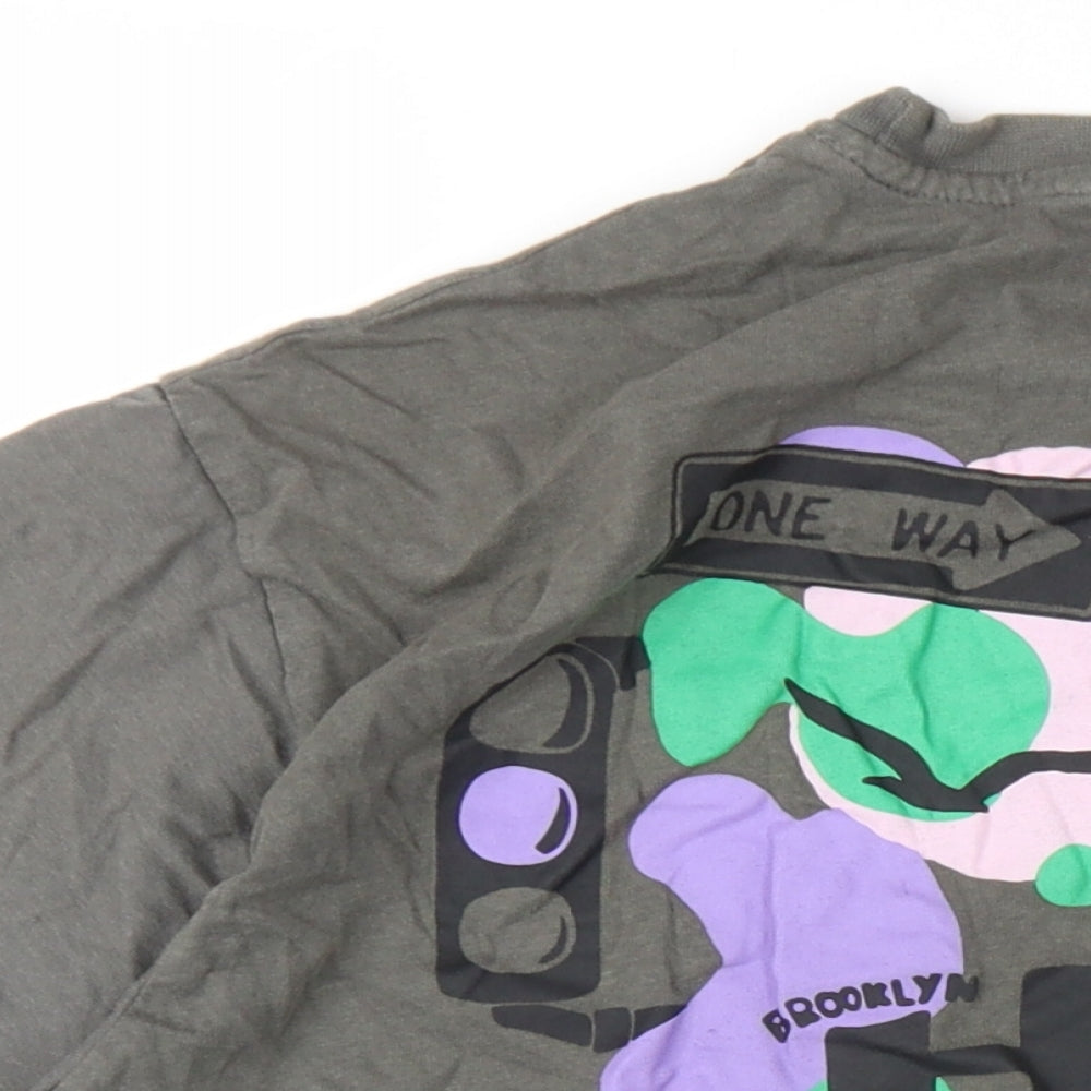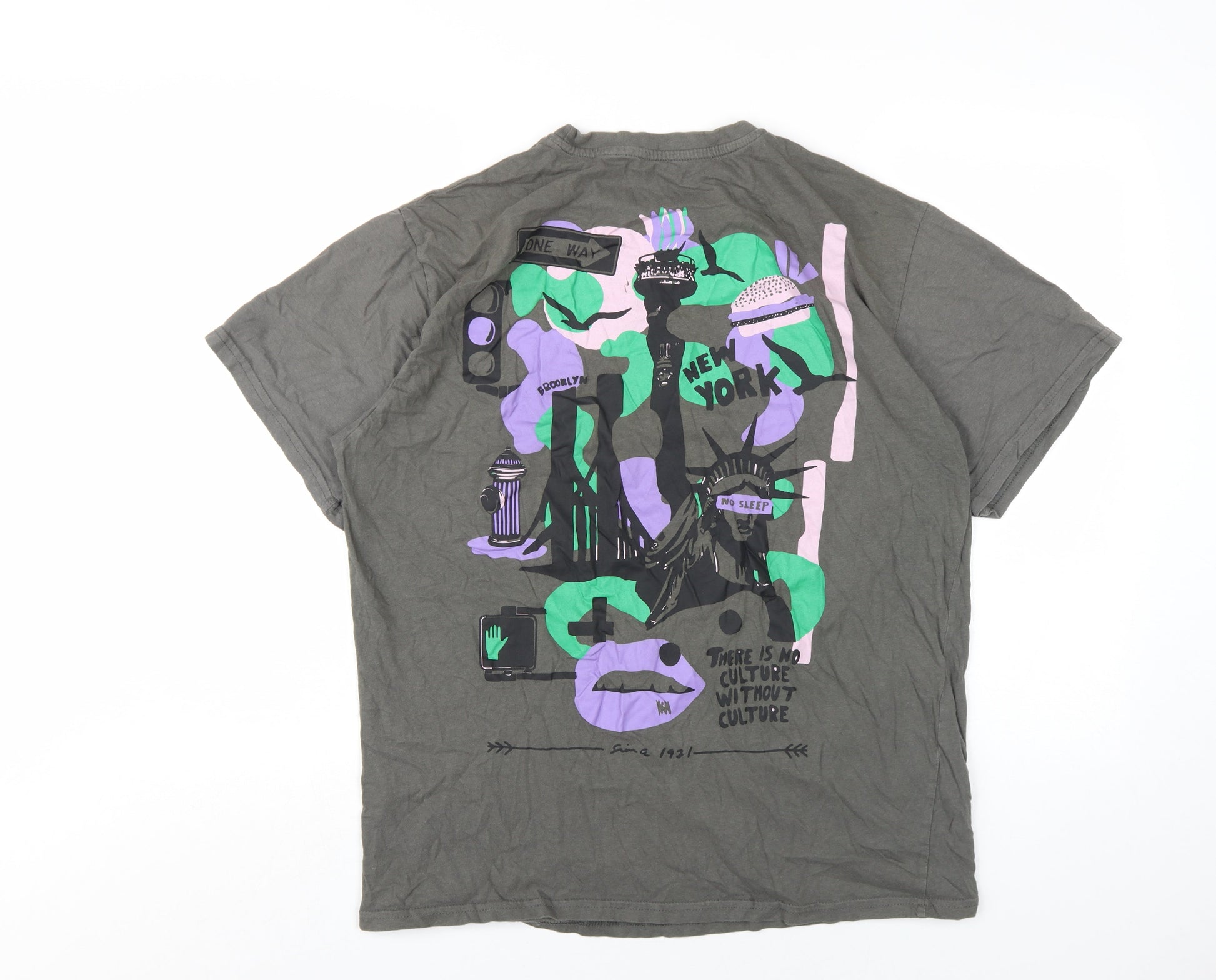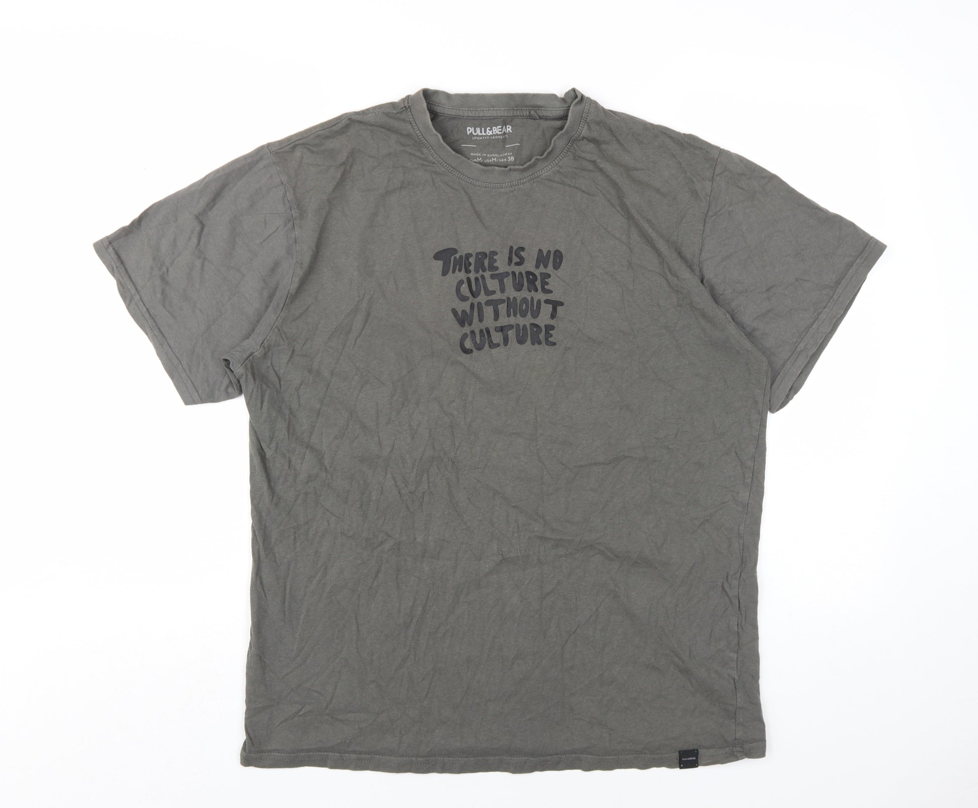 Pull&Bear Mens Grey Cotton T-Shirt Size M Round Neck
