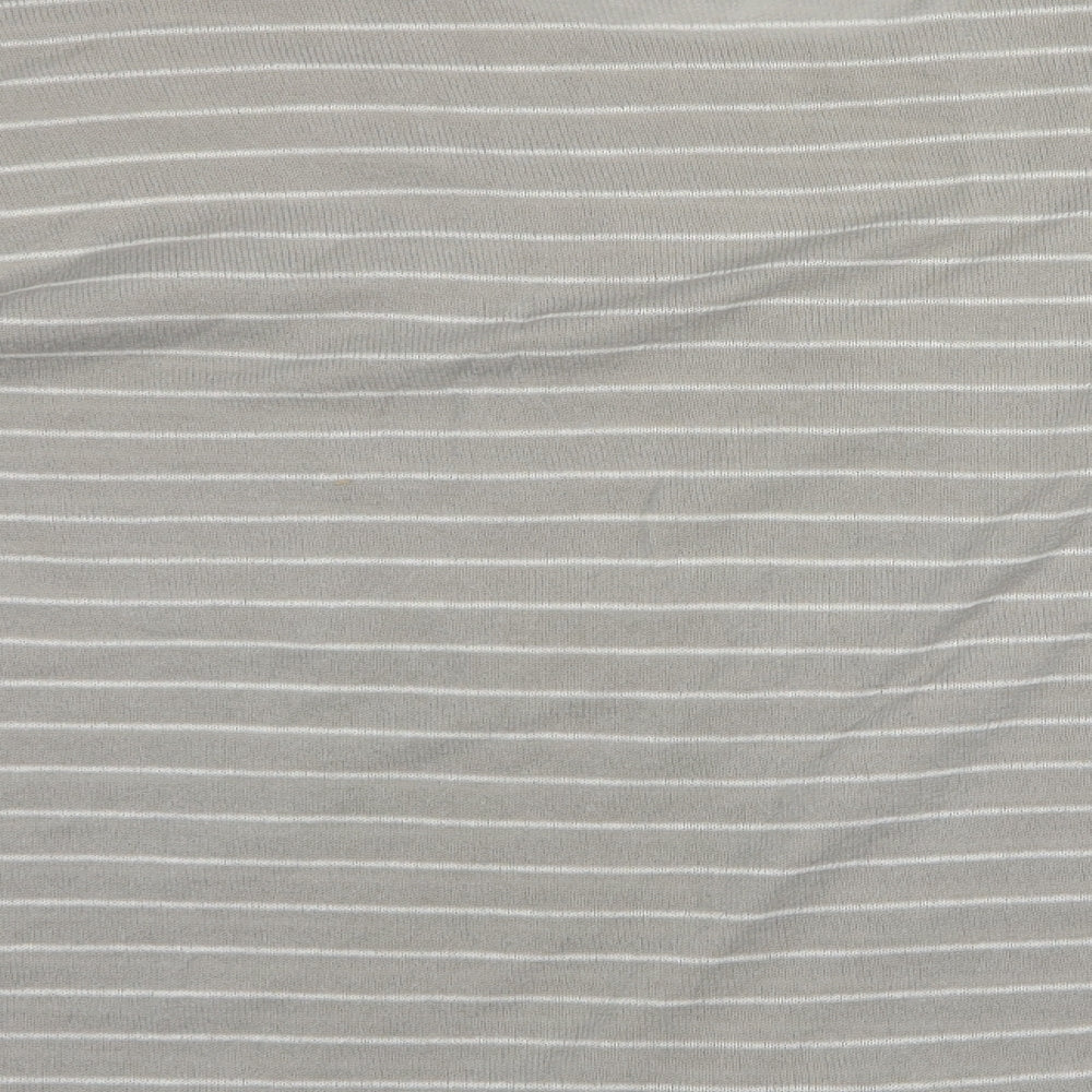 Pull & Bear Mens Grey Round Neck Striped Acrylic Pullover Jumper Size L