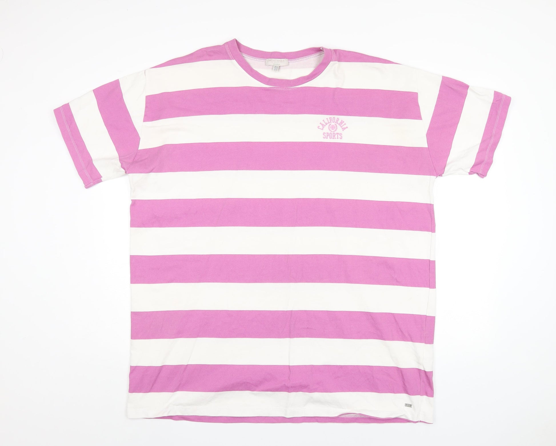 Pull&Bear Mens Purple Striped Cotton T-Shirt Size XL Round Neck